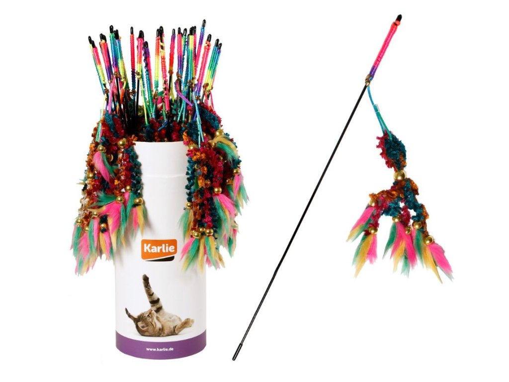 Škádlítko s farebnými mačacími návnadami so zamatovými chvostíkmi, malými lesklými korálkami a dlhými plyšovými kúskami sa chová dokonale ako korisť a zobudí v mačke prirodzený lovecký inštinkt.