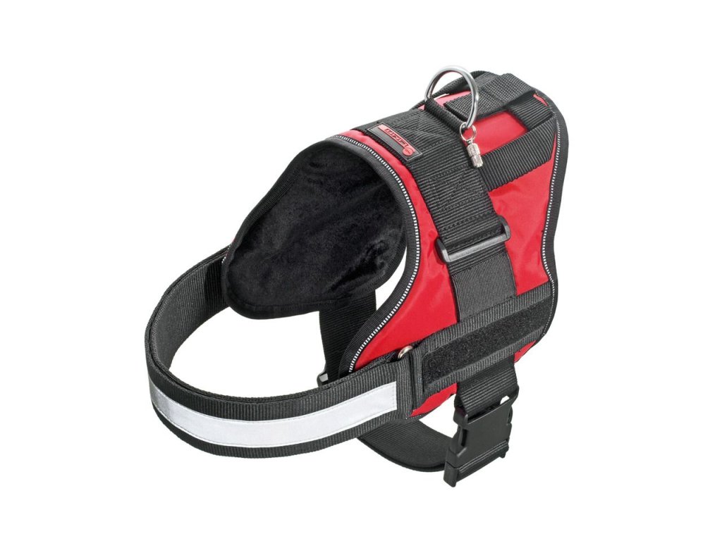 Postroj XTREME HARNESS v červenej farbe. Veľkosť 65-77 cm. Postroj je vyrobený z originálneho teflónu. Je extra silne prešitý, ale vďaka odľahčenému polstrovaniu správne rozloží tlak.