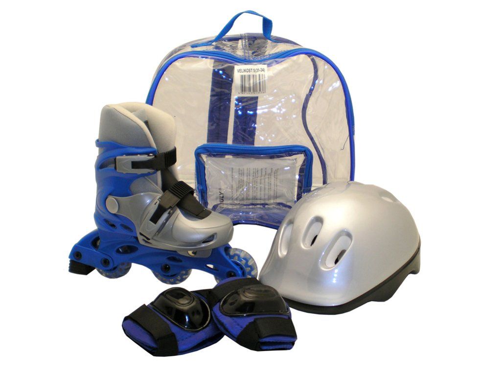 Detská sada obsahuje helmu, korčule a in-line chrániče, to všetko zabalené v praktickom priehľadnom batôžku. - prilba s vetracími otvormi - korčule plastové s brzdou - podvozok plastový - kolieska PVC 64*24 mm - veľkosti korčúľ: S (31-34), M (35-38) - in-line chrániče kolien a lakťovDodatočné parametre