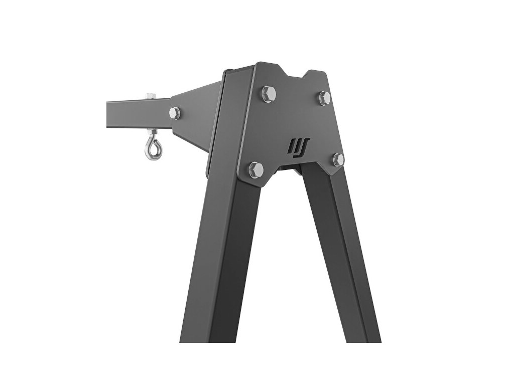 Toto riešenie tiež umožňuje pohodlne používať viac príslušenstva. Jeden rám môžete ľahko použiť napríklad na záhradnú hojdačku, brazílske kreslo, závesný posilňovací systém, lano na šplh alebo boxovacie vrece.