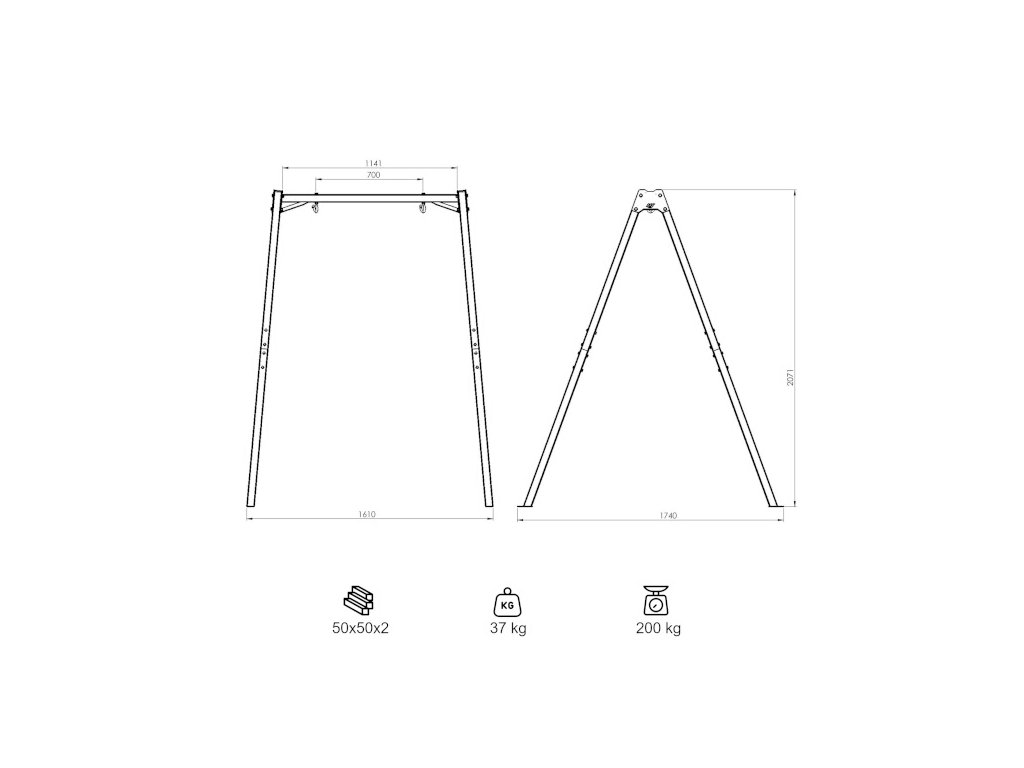 Ponúkaný výrobok je vysoko kvalitná, odolná a bezpečná konštrukcia z oceľových profilov s prierezom 50x50x2 mm zaručuje nosnosť až 200 kg.