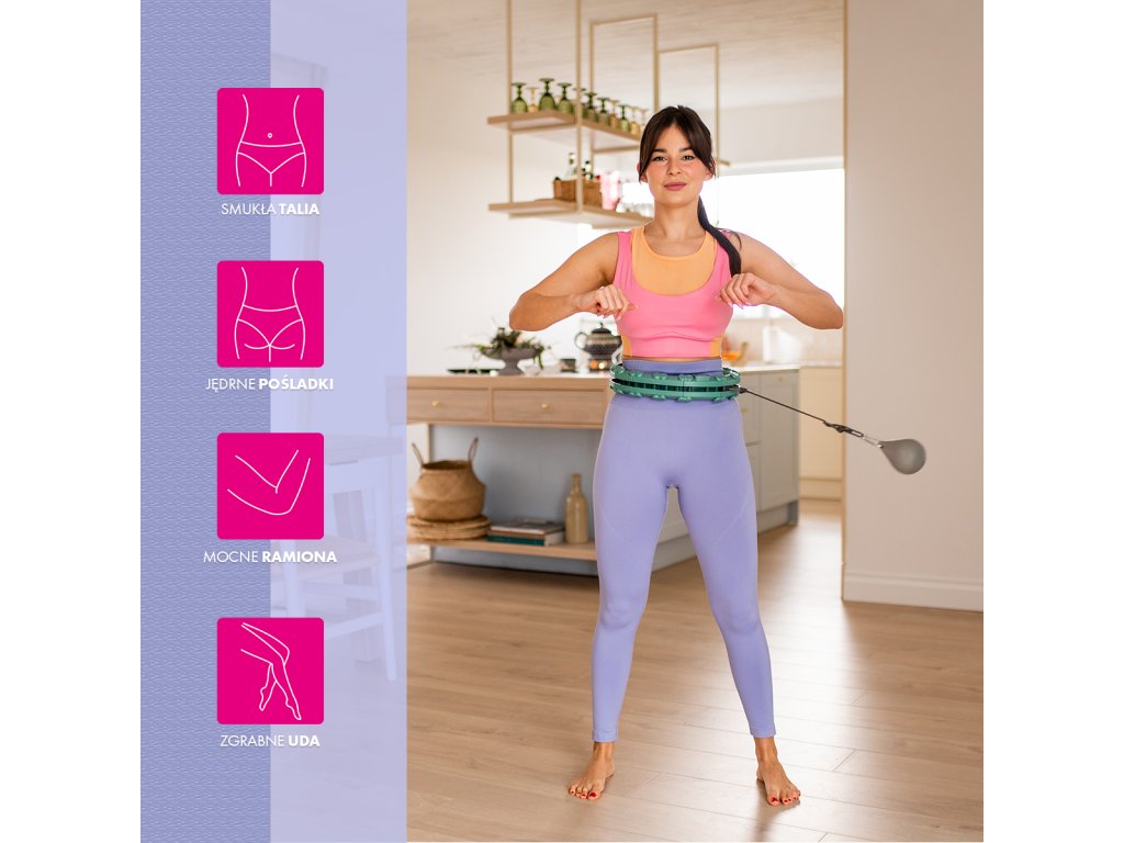 FH04 je hula hop obruč s nastaviteľnou dĺžkou, masážnymi výstupkami a rotujúcim závažím.