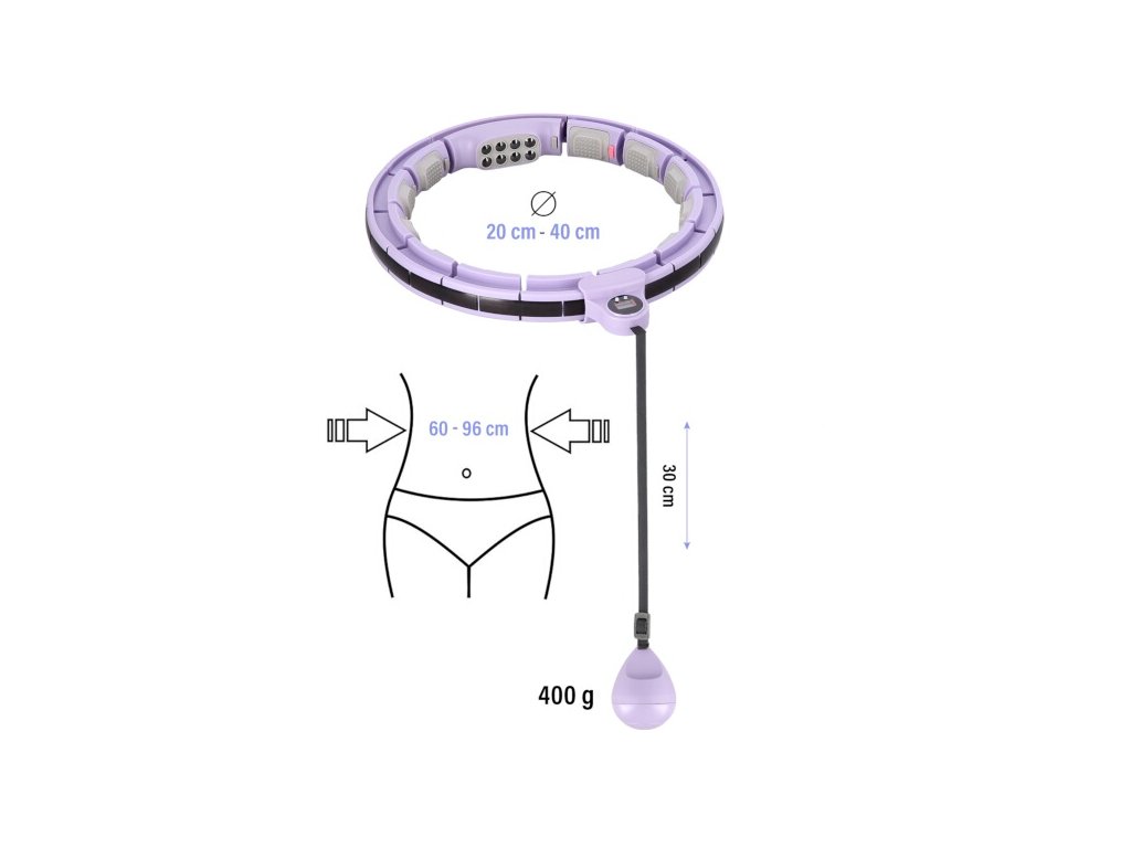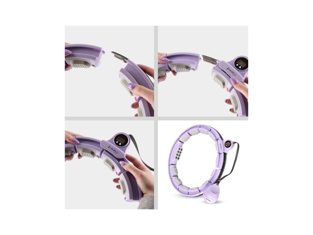 HMS HHM13 je hula hoop obruč s nastaviteľným obvodom, masážnymi výstupkami, blokom pre magnetickú masáž rotujúcim závažím a prehľadným počítadlom.