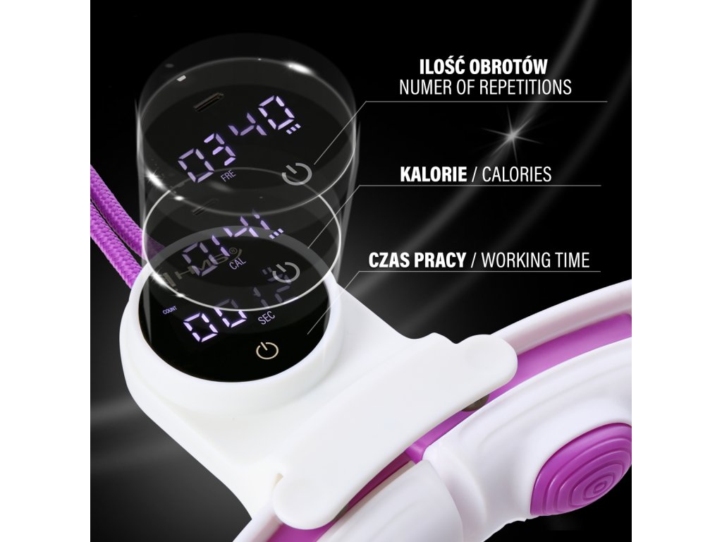 Model HHM17 je vybavený pokročilým digitálnym displejom, ktorý používateľom umožňuje neustále sledovať svoje úspechy počas tréningu. Tento displej poskytuje dôležité informácie, ako je dĺžka cvičenia, spálené kalórie a počet otáčok, čo vám umožňuje presne sledovať váš pokrok a efektivitu každého tréningu. Ďalšou dôležitou vlastnosťou je nabíjanie cez obľúbený USB-C kábel, ktorý je súčasťou sady, čo výrazne uľahčuje používanie a zvyšuje mobilitu zariadenia.
