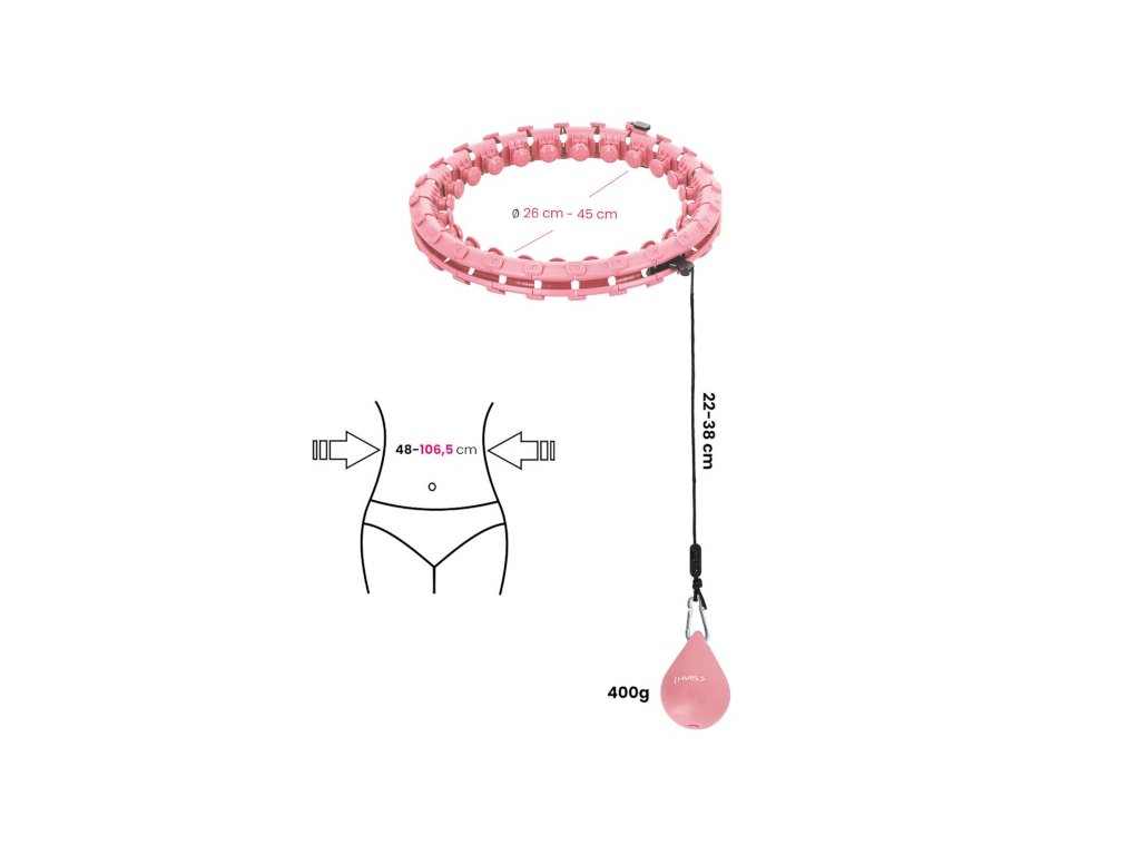 HMS HHW01 je hula hop obruč s nastaviteľnou dĺžkou, masážnymi výstupkami a rotujúcim závažím.