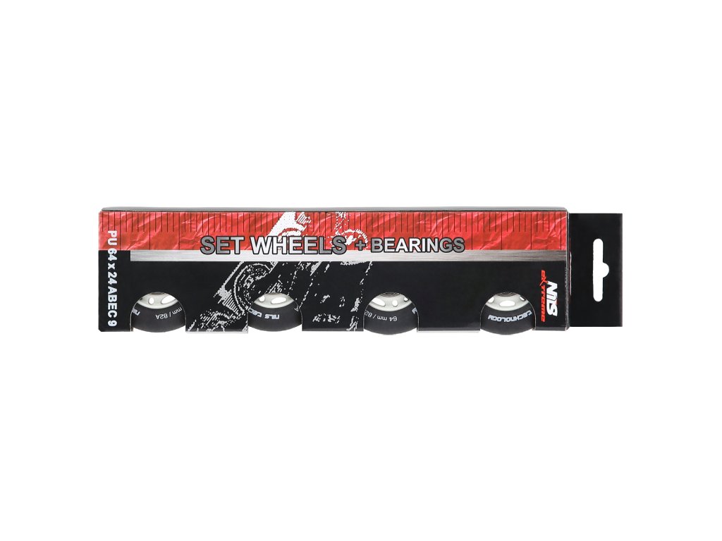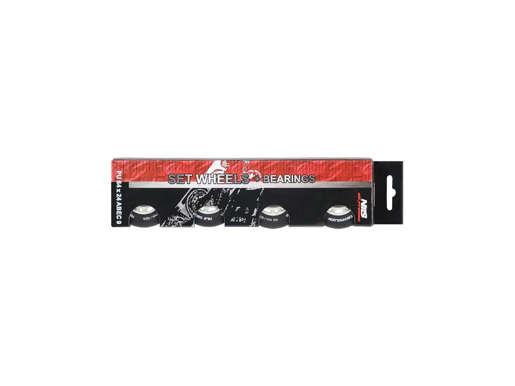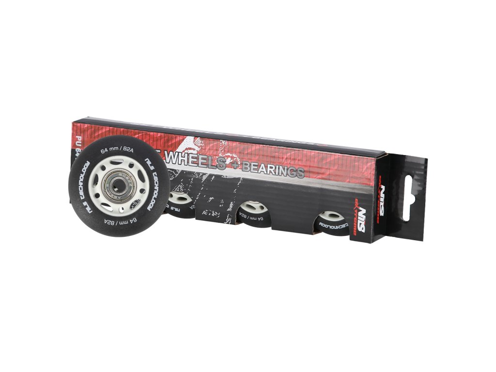 Matné kolieska NILS Extreme PU 64x24 82A s ložiskami ABEC 9, čierna, 4 ks