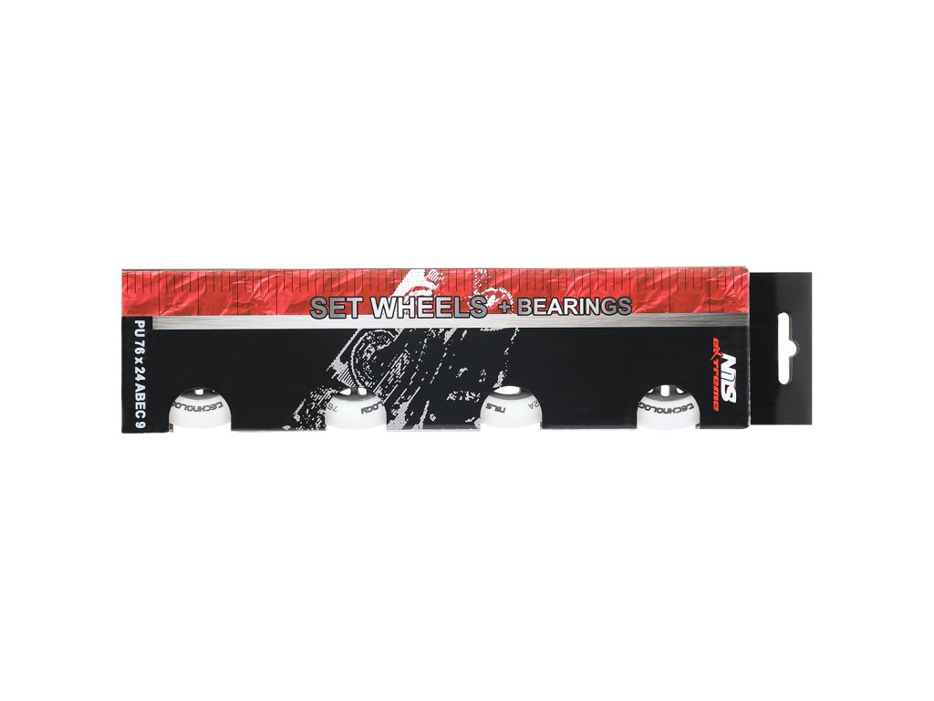 Matné kolieska NILS Extreme PU 76x24 82A s ložiskami ABEC 9, biela, 4 ks