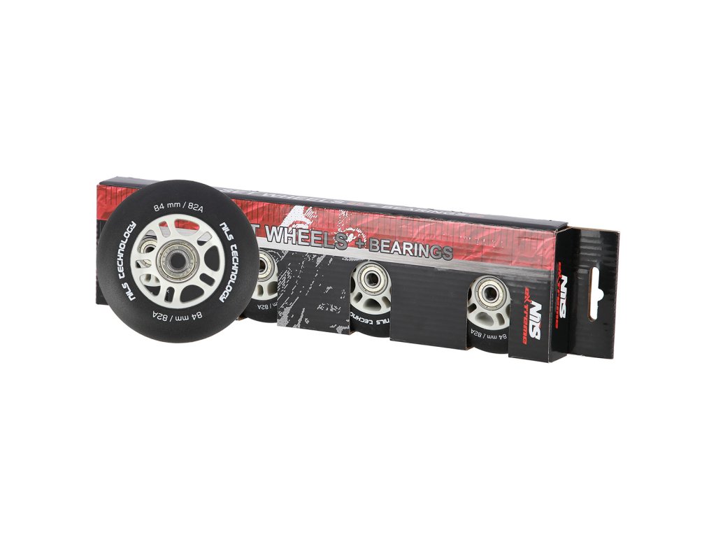 Matné kolieska NILS Extreme PU 84x24 82A s ložiskami ABEC 9, čierna, 4 ks