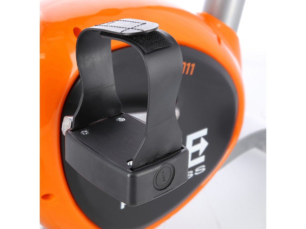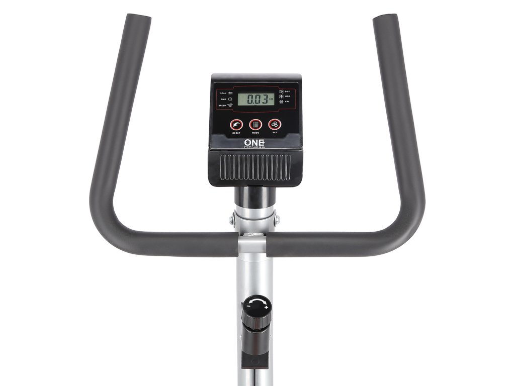 Mechanický rotoped ONE Fitness RW3011, ako už názov napovedá, má mechanický systém brzdenia bez záťažového kolesa. Prehľadný počítač zobrazuje všetky údaje potrebné na prehľadný tréning - čas tréningu, rýchlosť, vzdialenosť, celková vzdialenosť a spálené kalórie. Konzola je vybavená držiakom mobilného zariadenia, do ktorého umiestnite tablet alebo telefón a počas tréningu môžete sledovať napríklad obľúbený seriál.