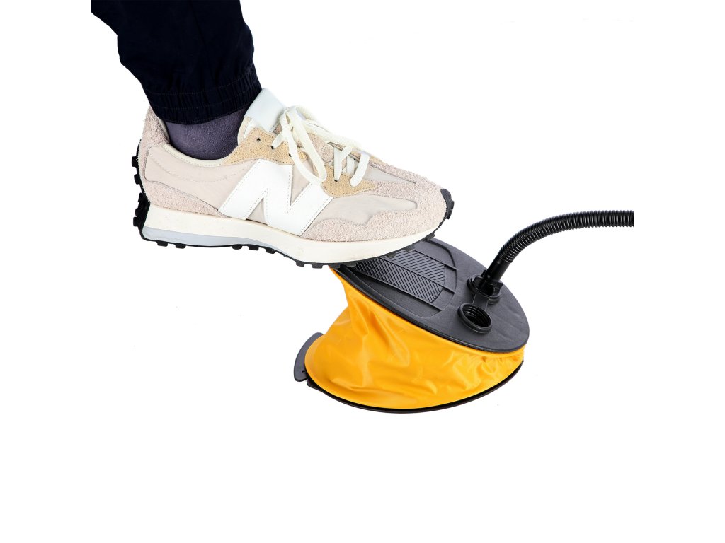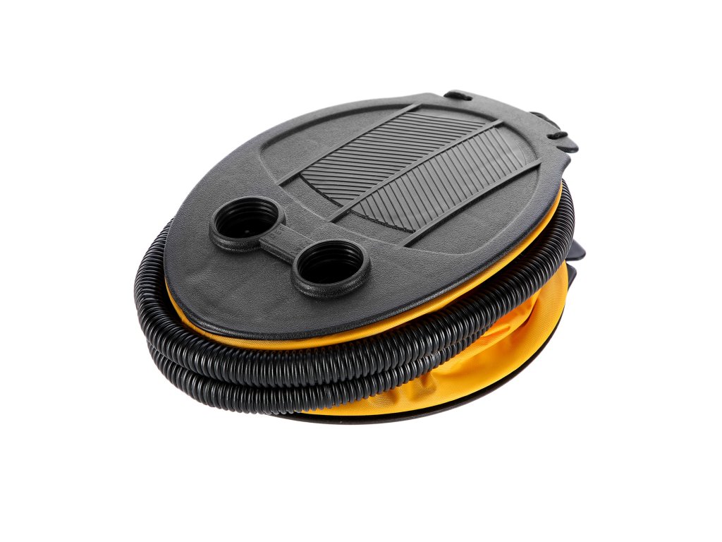 Vďaka kompaktným rozmerom a 105 cm dlhej hadici umožňuje pohodlné a efektívne pumpovanie bez toho, aby ste sa museli ohýbať alebo vynakladať veľké úsilie. Pumpa je ľahká a je možné ju zaistiť v plochej polohe, čo výrazne uľahčuje jej prepravu a skladovanie. Na hornej strane nájdete 2 výstupy - jeden na nafukovanie a druhý na vyfukovanie.