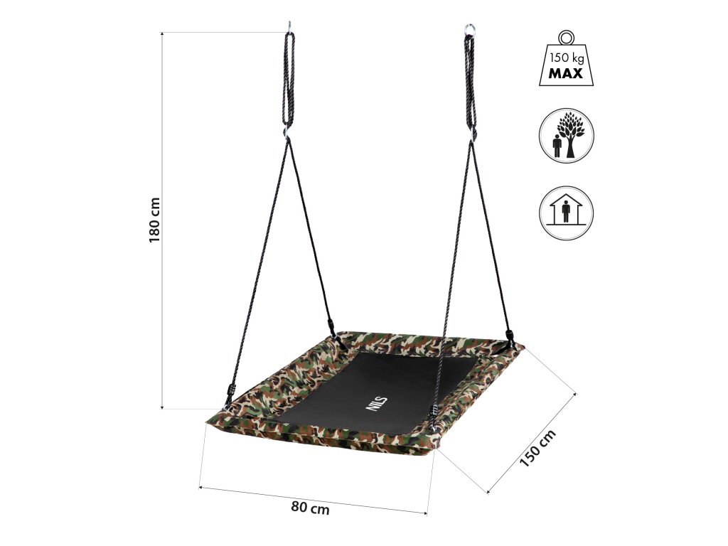 Obdelníková houpačka typu čapí hnízdo NILS Camp NB5043 maskáčová