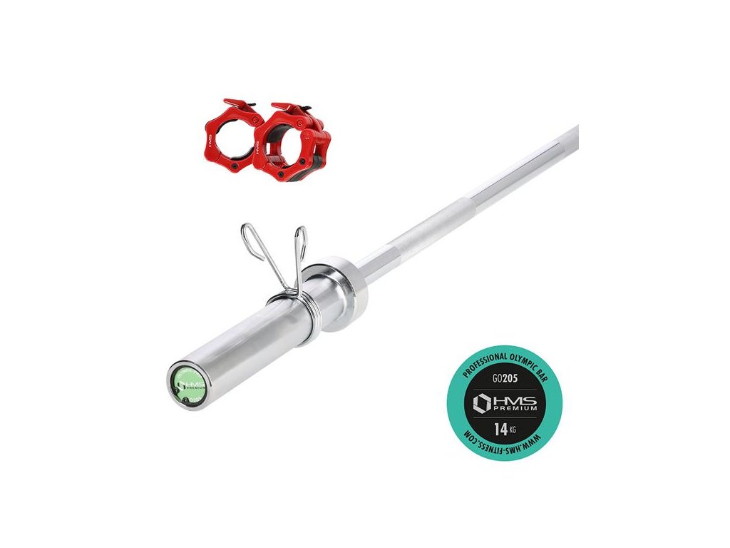 Olympijský hriadeľ HMS Premium GO205 je vyrobený zo špeciálnej chrómovanej ocele, ktorá prešla procesom kalenia. Os GO205 sa vyznačuje pevnosťou v kombinácii s dokonalou pružnosťou. Súčasťou súpravy sú dva pružinové uzávery. Pevné a pohodlné uchopenie hriadeľa je zaistené vrúbkovaním na povrchu. Maximálne zaťaženie je 200 kg. Priemer úchopovej časti 28 mm zaisťuje vysokú odolnosť a pohodlie počas tréningu. Použitý proces chrómovania hriadeľa je zárukou zachovania jej vzhľadu po dlhú dobu jeho používania a tiež je najlepšou ochranou proti korózii. Olympijský hriadeľ HMS Premium GO205 má 4 ihličkové ložiská (2 na každej strane), ktoré umožňujú hladké a plynulé otáčanie rukávov na hriadeli. Jej konštrukcia znižuje napätie na koncoch valčekov, čo má za následok vyššiu životnosť ložísk. Napriek svojmu malému prierezu majú ihličkové ložiská vysokú tuhosť a nosnosť. Dva pružinové uzávery nachádzajúce sa v balení zaručujú stabilné rozloženie záťaže na hriadeli počas tréningu.