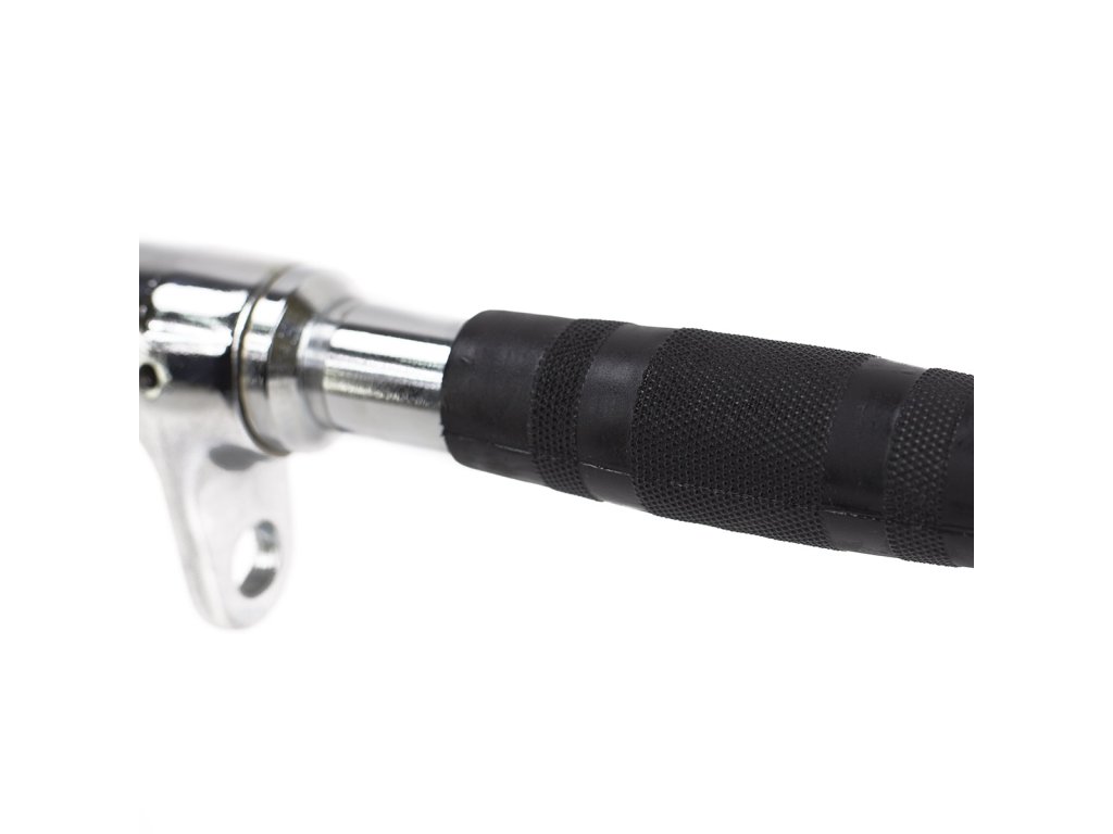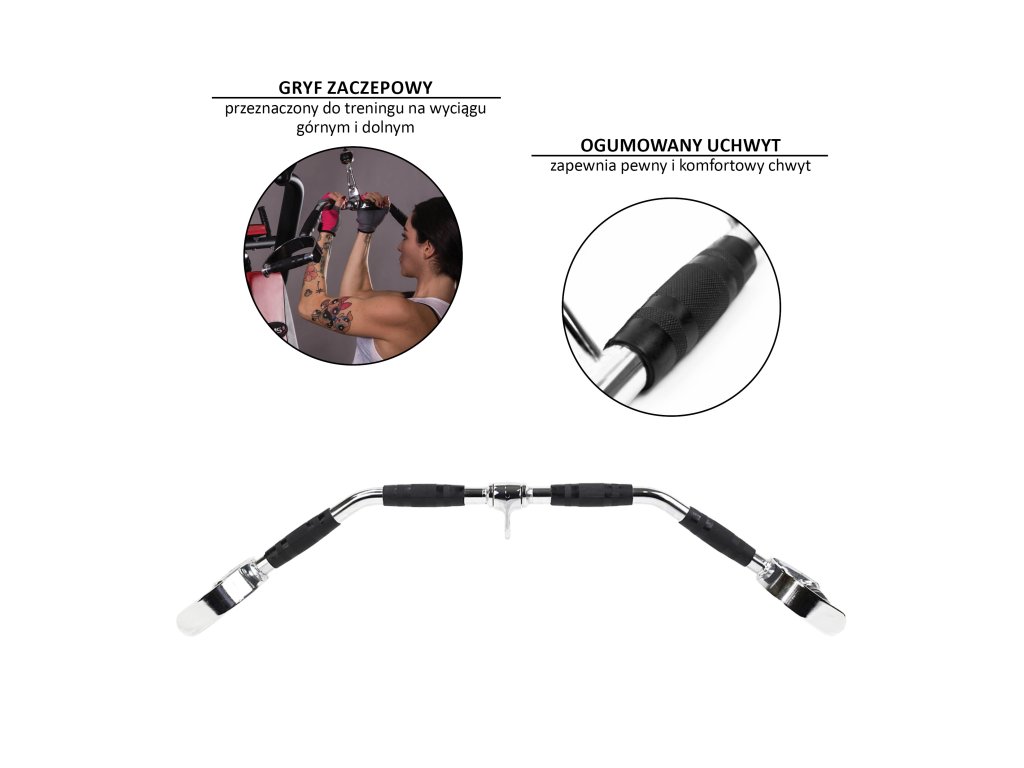 UW15 je vyrobený z vysoko kvalitnej ocele, čo vám dáva možnosť cvičiť so značnou záťažou. Jeho dĺžka a rozstup pogumovaných rukovätí zaručujú širokú škálu možností úchopu - od veľmi úzkeho až po veľmi široký. Adaptér tak umožní komplexné precvičenie svalov. Rukoväte sú v najširších miestach pod uhlom, čo napomáha priťahovaniu lakťov k trupu, a tým udržaniu lepšej techniky cvičenia. Počas cvičenia umožňuje UW15 zapojiť alternatívne svalové úpony v porovnaní s cvikmi s rovným adaptérom. Madlá opatrené gumou zaisťujú bezpečný a pohodlný úchop bez obáv, že vám adaptér vykĺzne z rúk.