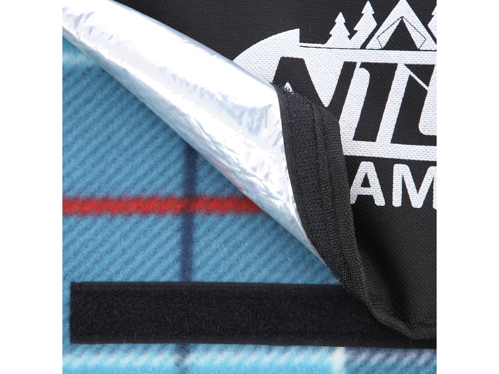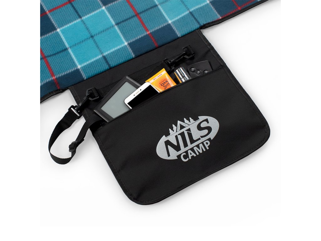 Piknikovú deku NILS Camp NC8002 využijete nielen počas rodinného obeda v parku, ale aj pri vode, alebo napríklad ako podlahu v stane. Materiál je na dotyk príjemný fleece. Spodná vrstva je vyrobená z hliníkovej fólie opatrenej vodeodolnou úpravou, ktorá tak chráni pred vlhkom a chladom napríklad od mokrej trávy. Pre ľahké prenášanie je možné deku zložiť do malej "tašky" vybavenej uchom a popruhom cez rameno. V klope sa nachádza vrecko na zips, do ktorého sa zmestia napríklad kľúče, telefón alebo peňaženka.