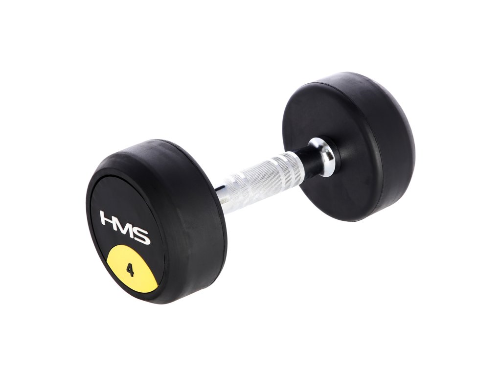 4 kilogramová jednoručná činka HMS HG Pro je určená na profesionálne použitie ako doma tak v posilňovni. Závažie tvorí liatinový odliatok pokrytý hrubou vrstvou gumy, ktorá ochráni ako činku, tak podklad pred poškodením. Na čelnej strane je značka HMS a údaj o hmotnosti v kilogramoch. Rukoväť je vyrobená z chrómovanej ocele, pre pohodlný úchop má súdkovitý tvar s vrúbkovaným povrchom.
