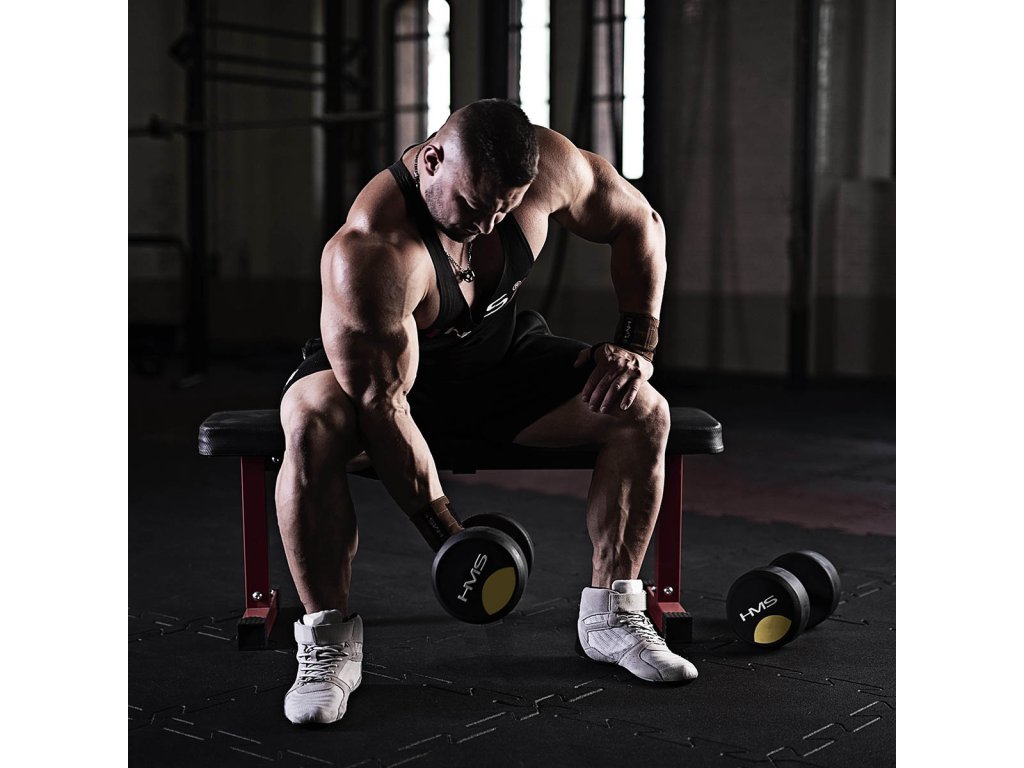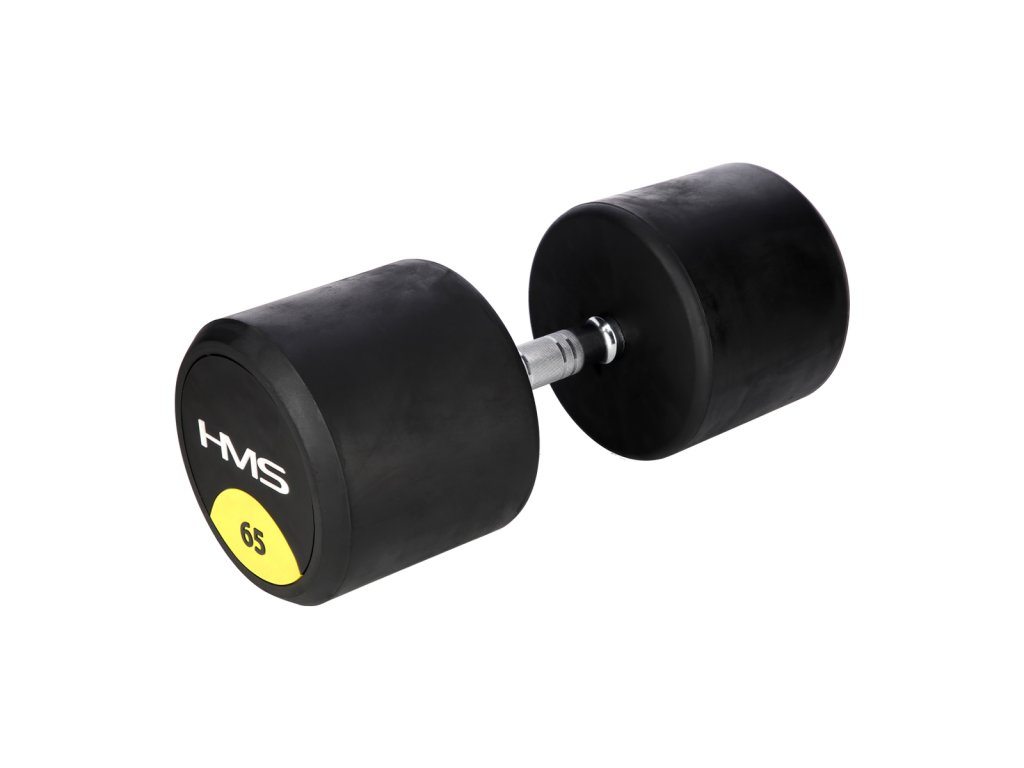 65 kilogramová jednoručná činka HMS HG Pro je určená na profesionálne použitie ako doma tak v posilňovni. Závažie tvorí liatinový odliatok pokrytý hrubou vrstvou gumy, ktorá ochráni ako činku, tak podklad pred poškodením. Na čelnej strane je značka HMS a údaj o hmotnosti v kilogramoch. Rukoväť je vyrobená z chrómovanej ocele, pre pohodlný úchop má súdkovitý tvar s vrúbkovaným povrchom.
