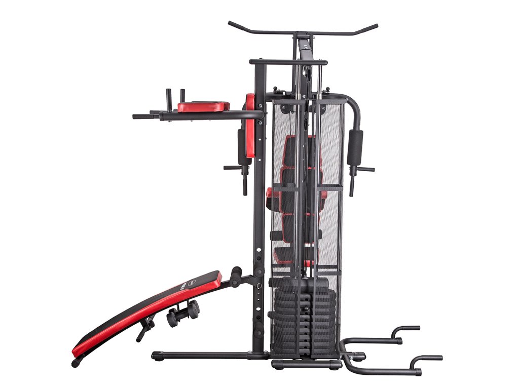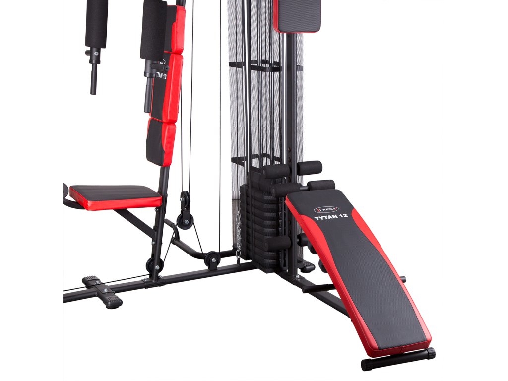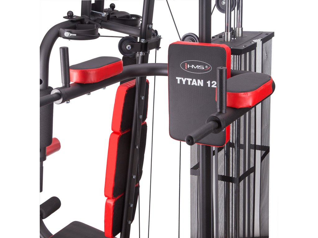 Sedáky a podpery veže HMS Tytan 12 sú vyrobené z vysokej vrstvy peny ukryté pod extra pevným polstrovaním v modernom, carbonovom vzhľade. Hlavnú chrbtovú oporu tvoria 3 samostané panely pre pevné s pohodlné frženie tela. Tytan 12 ponúka komplexný tréning takmer všetkých svalových skupín. Oceľová konštrukcia má nosnosť 110 kilogramov.