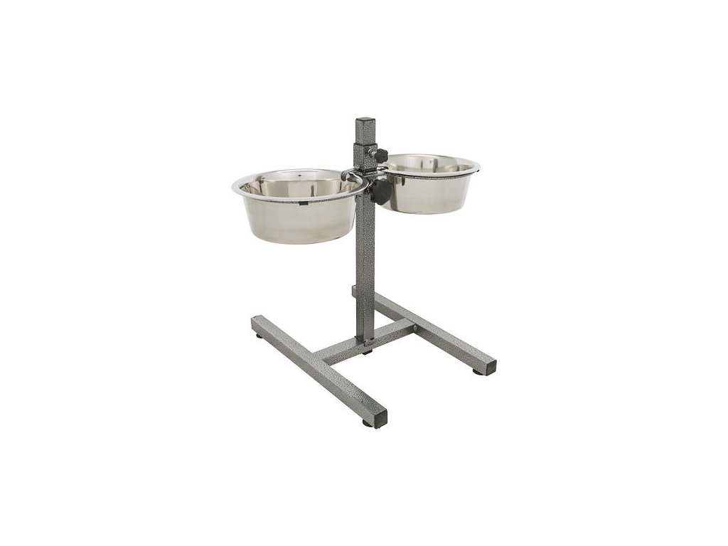 - s 2 výškovo nastaviteľnými miskami z nerezovej ocele < li>kovový stojan s povrchovou úpravou vo vzhľade tepaného kovu (tzv. hammer tone)