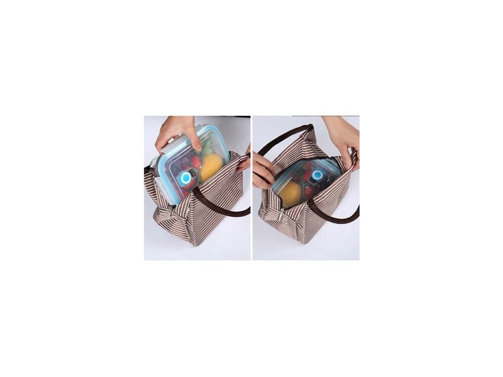 Chystáte si vziať so sebou na výlet desiatu? Zabudnite na igelitové vrecká. S touto štýlovou termotaškou Merco sa vám desiata bude nosiť oveľa ľahšie. Taška je skvelým pomocníkom na výlety, kempovanie, piknik alebo k vode. Hodí sa aj na prenášanie obeda do práce či do školy. Termotaška má rozmery 21 x 15,5 x 17 cm a je vyrobená z tkaniny Oxford s atraktívnym pruhovaným dizajnom, ktorý ponúkame v troch farebných prevedeniach (červená-biela, hnedá-biela, čierna-biela). Vďaka vnútornej vrstve z ALU fólie si potraviny a nápoje dlhšie udržia svoju teplotu. Taška má zapínanie na zips a dve pevné uši pre ľahšie prenášanie. Termotašku je možné po použití ľahko zložiť, aby nezaberala príliš miesta. Na odstránenie prípadných nečistôt od potravín je možné termotašku utrieť vlhkou handričkou. Tašku neperte v práčke. Pred výletom už teda nezostáva nič iné ako dať do termotašky krabičku s obedom alebo desiatou, pridať ovocie a plechovku s pitím a vyraziť.Dodatočné parametre