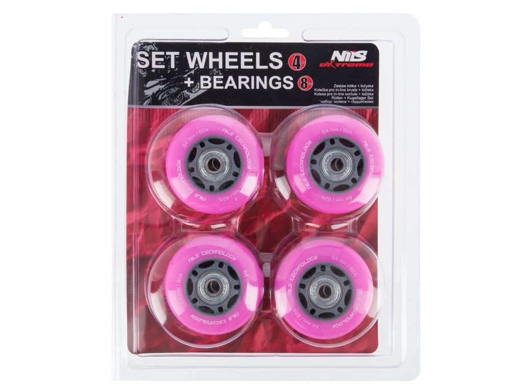Náhradné PU kolieska s ložiskami NILS EXTREME pre kolieskové korčule. Tvrodst 82A zaručuje prispôsobenie každému povrchu. Ložiská ABEC 7 zaručujú dlhú životnosť. Veľkosť koliesok sa volí podľa štýlu jazdy. Menšie kolieska sú pomalšie, ale umožňujú lepšiu manévrovateľnosť. Väčšie kolieska sú rýchlejšie, ale ťažšie zatáčajú.