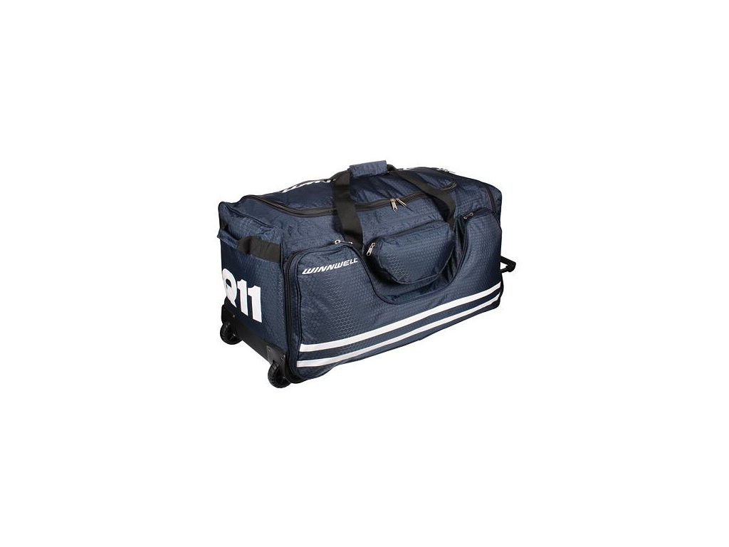 Hokejová taška Winnwell Q11 Wheel Bag je nová odolná taška na kolieskach vyrobená z pevného nylonu a je nástupcom pôvodnej obľúbenej série tašiek Q9. Model Q11 je dostupný tradične vo veľkosti junior 36" a senior 40". Základ tašky tvorí priestranný hlavný panel s otvorom v tvare "U", ktorý umožňuje pohodlné vkladanie kompletnej hráčskej výstroje. Konštrukcia tašky je spevnená plastovým dnom a lyžinami. Na bočnej strane sú dve vrecká, kam je možné oddelene umiestniť korčule a medzi nimi je prostredné vrecko na drobnosti. Bočné vrecko má v hornej časti sieťovaný materiál na dokonalé vysychanie a vzdušnosť. Teleskopické madlo zapustené v pevnom ráme a dve väčšie terénne kolieska zaistia pohodlné cestovanie a prenášanie. Je možné využiť aj klasické popruhy na nosenie tašky v rukách. Q11 Wheel Bag JUNIOR: - vnútorná teleskopická rukoväť - dve veľké terénne kolieska pre jednoduchú prepravu - taška vyrobená z pevného nylonu - predné a bočné vrecká - otváranie horného panelu v tvare písmena U - rozmery senior: 36" x 18" x 16" (91 x 45 x 40 cm) - hmotnosť: 5,3 kgDodatočné parametre