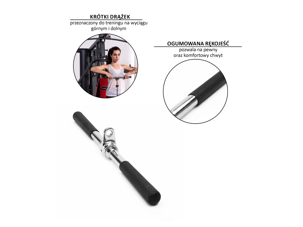 Rovná tricepsová tyč UW12 je štandardným a snáď najpoužívanejší fitness adaptér. Vhodný na precvičenie bicepsov, tricepsov a ramien. Tento adaptér má gumové rukoväte s drážkovaním, ktoré zabraňuje prekĺzaniu.