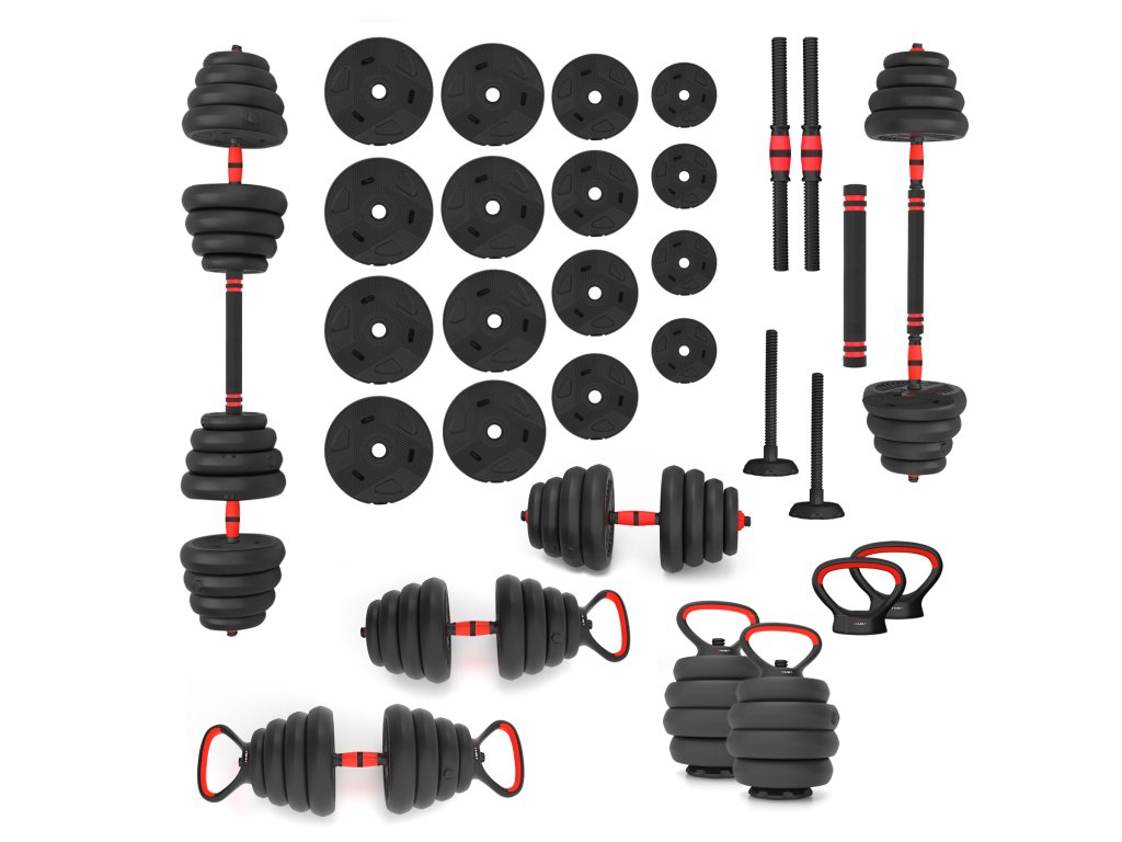 Ide o základný prvok každej posilňovne. Na os si z kotúčov vyskladáte potrebnú hmotnosť a zaistíte ich skrutkovacími uzávermi.