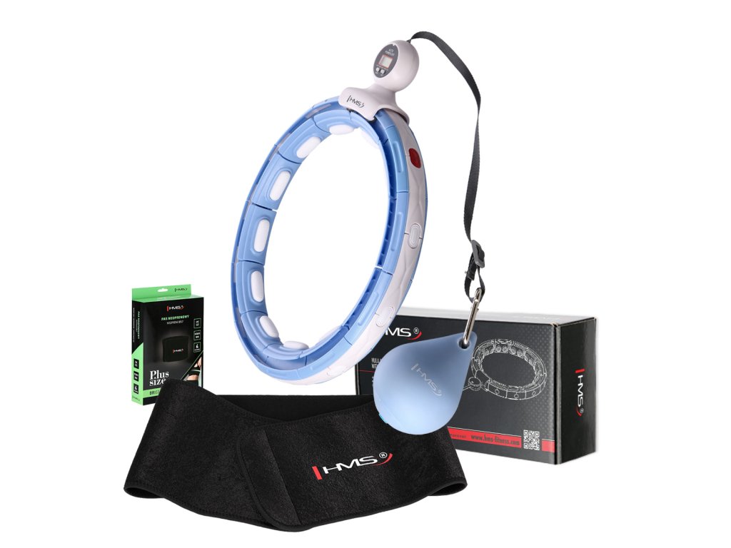 HMS HHM15 je hula hoop obruč s nastaviteľným obvodom, masážnymi magnetickými výstupkami, rotujúcim závažím a počítadlom.