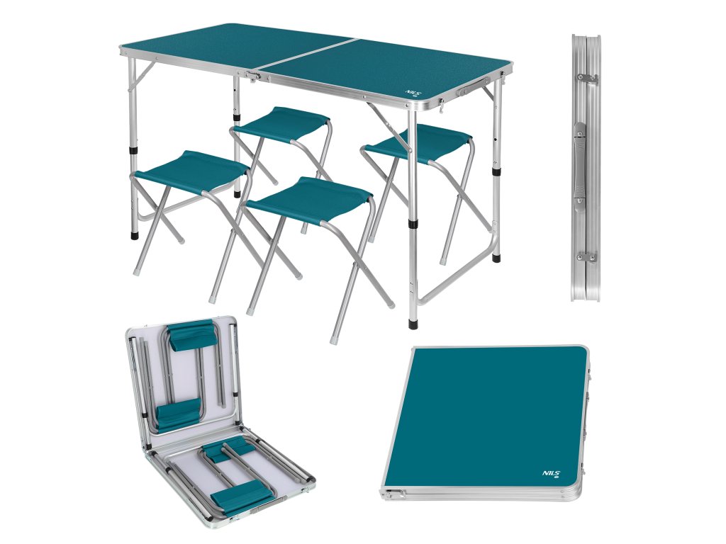 Sada skládacího kempingového stolu a židliček NILS Camp NC1633 modrá