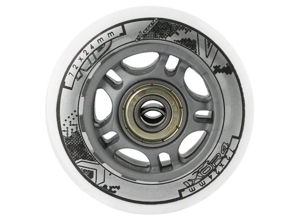 Náhradná sada koliesok veľkosti 72x24 mm mliečnej farby a tvrdosti 82 A s ložiskami ABEC 7.