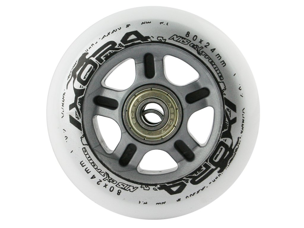 Náhradná súprava koliesok veľkosti 80x24 mm mliečnej farby a tvrdosti 82 A s ložiskami ABEC 7.