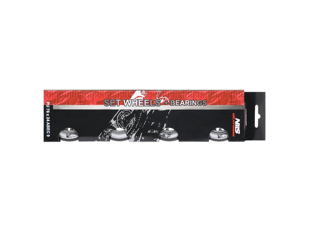 Zostava čiernych PU koliesok 76x24 + ložiská ABEC9 NILS EXTREME