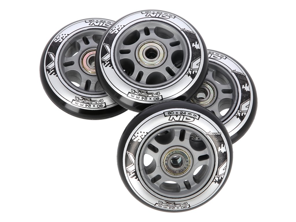 Náhradná sada koliesok veľkosti 80x24 mm čiernej farby a tvrdosťou 82 A s ložiskami ABEC 9.