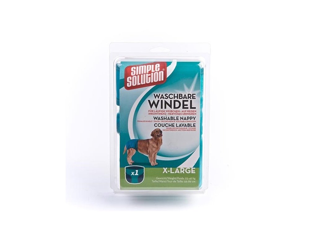 Plienky pre psov od Simple Solution sú vyrobené z mikrovlákna, obsahujú super absorpčný polymér, ktorý prispieva k rýchlemu vstrebaniu tekutín a udržuje pokožku v suchu. Navyše majú schopnosť byť znovu použité.