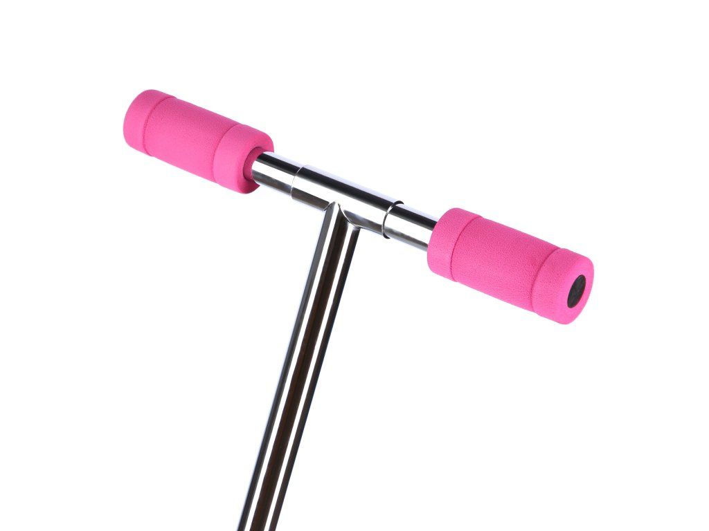 Zadný blatník slúži ako prítlačná brzda. Riadidlá je možné pri skladaní sklopiť a pre maximálne pohodlie počas jazdy sú opatrené gumovými rukoväťami. Výšku riadidiel je možné nastaviť do 3 úrovní v rozsahu od 79 do 103 cm.
