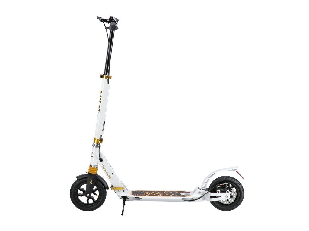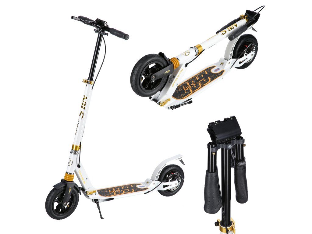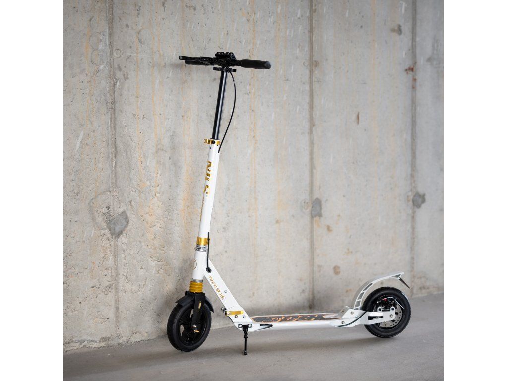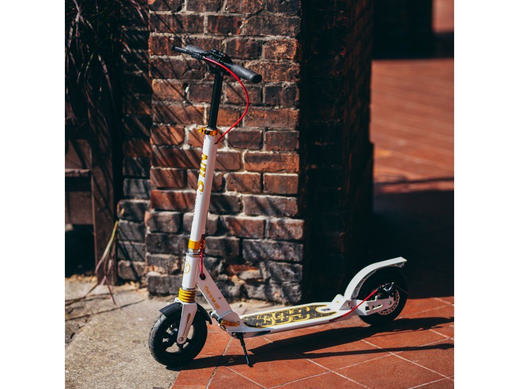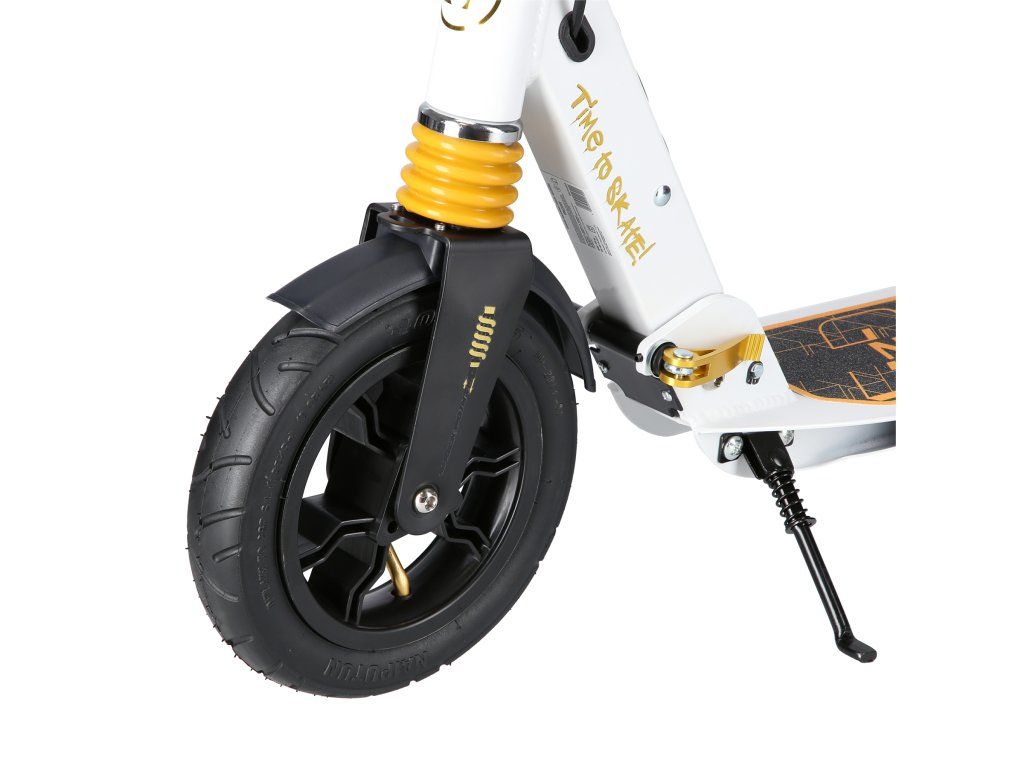 S kolobežkou HM209T máte cestovný komfort na dosah ruky. Rýchle ložiská ABEC9 zaručujú hladkú jazdu a výnimočnú odolnosť, zatiaľ čo nafukovacie kolesá s priemerom 200 mm zaistia, že každá cesta bude plynulá a príjemná. Kolobežka je tiež vybavená predným aj zadným tlmičom, čo je v tejto kategórii výrobkov jedinečné a stojí za jej výnimočným komfortom jazdy bez ohľadu na nerovnosti terénu. Nastaviteľné riadidlá umožňujú prispôsobiť kolobežku výške užívateľa a ponúkajú ideálnu ergonómiu. Gripy sú gumové s ergonomickým tvarom pre istý a pevný úchop.