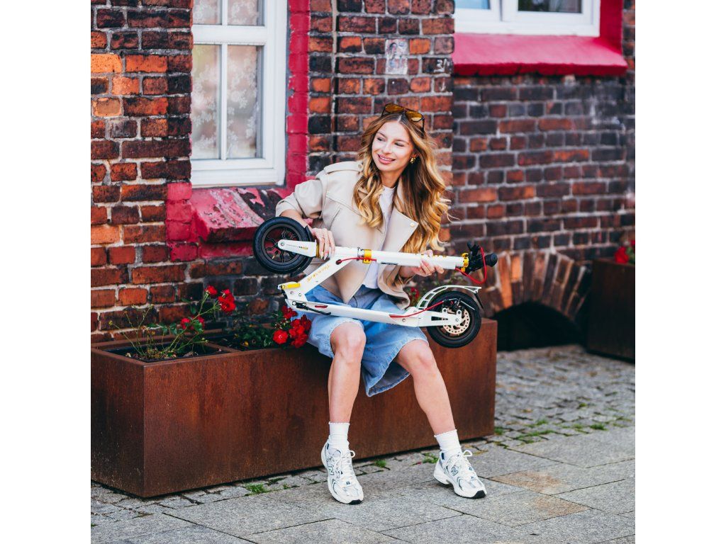 Kolobežka HM209T má odnímateľný ramenný popruh, ktorý je súčasťou dodávky, takže sa veľmi ľahko prenáša, a jej kompaktné rozmery v zloženom stave uľahčujú prepravu a skladovanie. S kolobežkou nie je problém cestovať napríklad v autobuse, alebo električke počas každodenného dochádzania do práce. HM209T sa tiež ľahko zmestí do kufra osobného automobilu, kde nezaberie veľa miesta a môžete si ju tak vziať so sebou napríklad na dovolenku, alebo na chalupu.