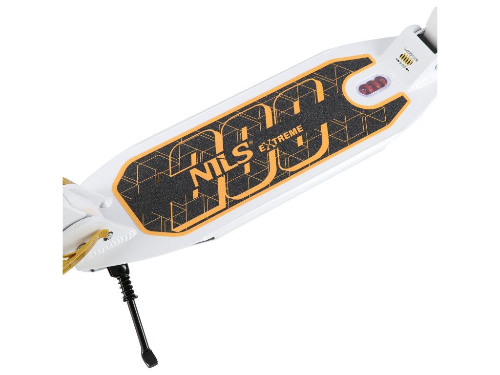 Kolobežka NILS Extreme HM209T má zadné koleso osadené kotúčovou a nášľapnou brzdou pre okamžité zastavenie , čo z nej robí ideálnu voľbu pre dynamickú jazdu v meste. Robustná, hliníková platforma s rozmermi 61 x 15 cm je dostatočne priestranná pre obe nohy. Griptape zaisťuje vysokú priľnavosť topánok. Model HM209T je navyše vybavený odrazkou na nášľapnej brzde, vďaka ktorej sme po zotmení viditeľní z diaľky, čo výrazne zvyšuje našu bezpečnosť. Pre maximálnu bezpečnosť si nezabudnite vždy pribaliť helmu a chrániče.