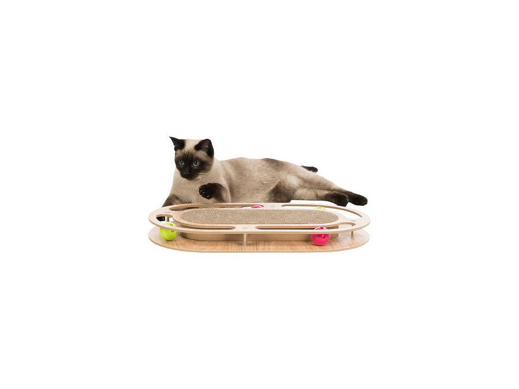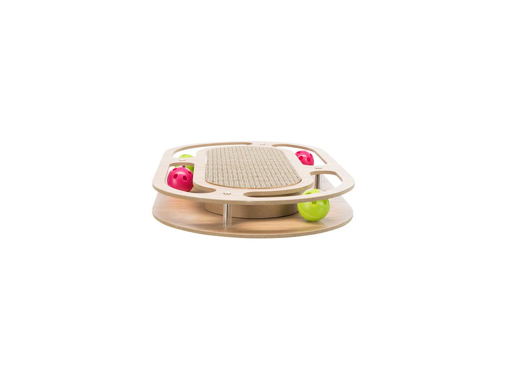 Škrabací kartón v drevenom ráme, s catnipom a hračkami, 45x4x25cm
