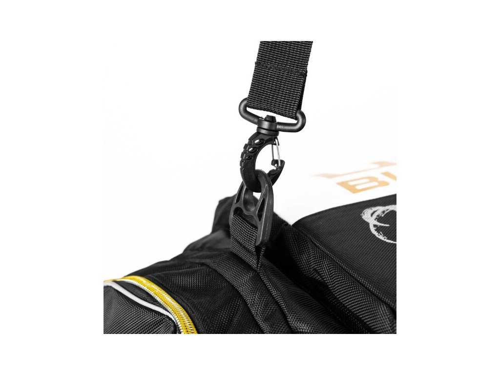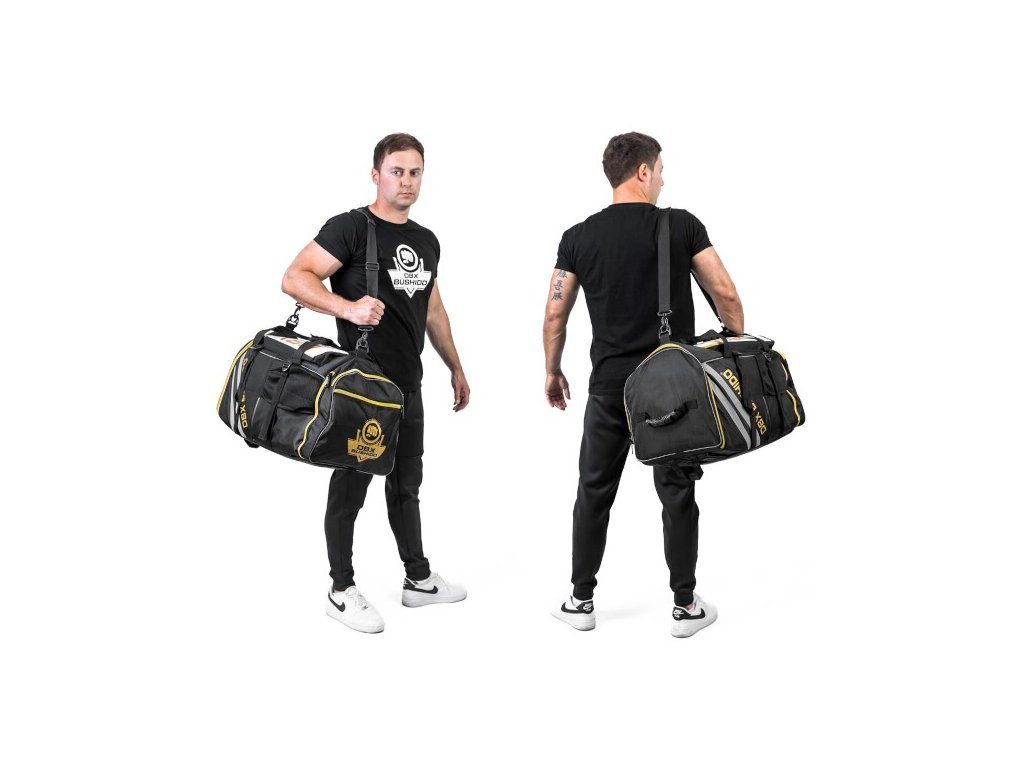 Tréningová taška DBX-SB-22 je ideálnym modelom pre každého, kto hľadá veľkú odolnú a pohodlnú tašku vhodnú pre najrôznejšie použitie. DBX-SB-22 má objem 75 litrov a je možné ju nosiť ako klasickú tašku, ako tašku cez rameno alebo ako batoh. uľahčí až deväť rôznych vreciek. Taška je navyše vybavená uzatvárateľnou termovreckom na prepravu teplých alebo studených nápojov a pokrmov.