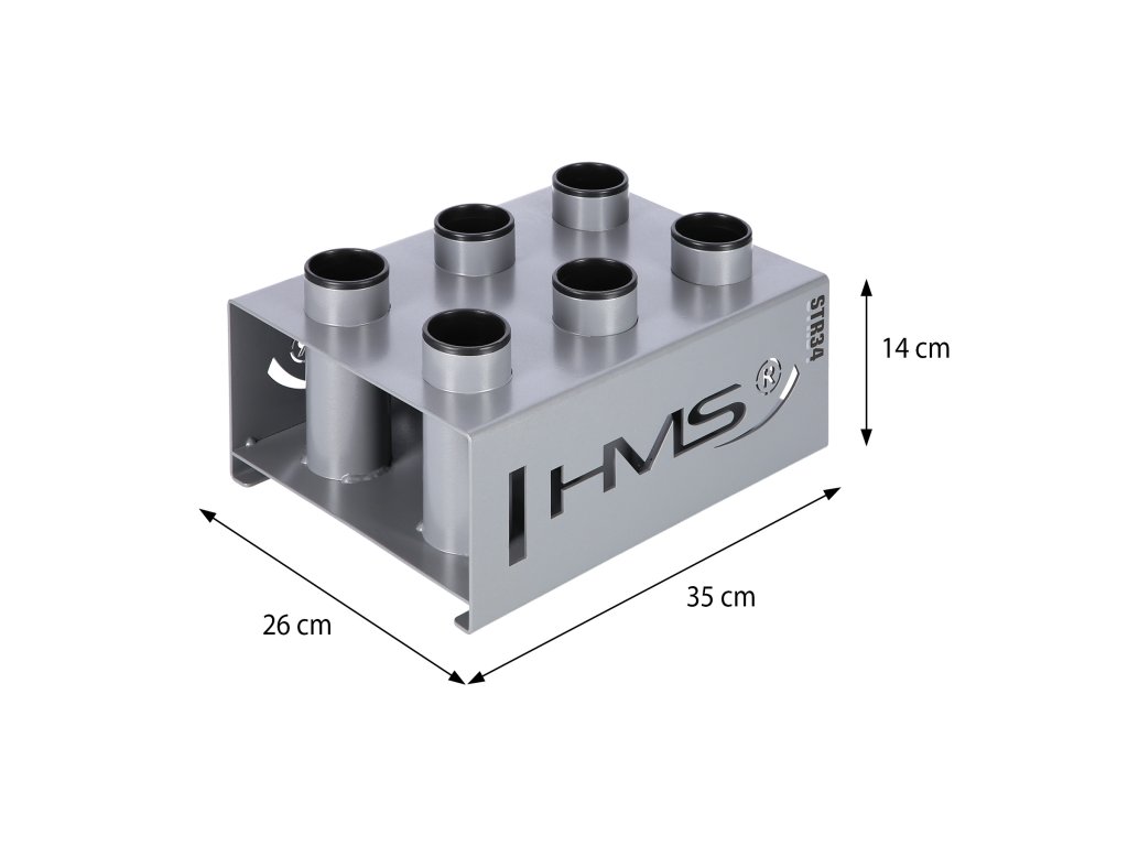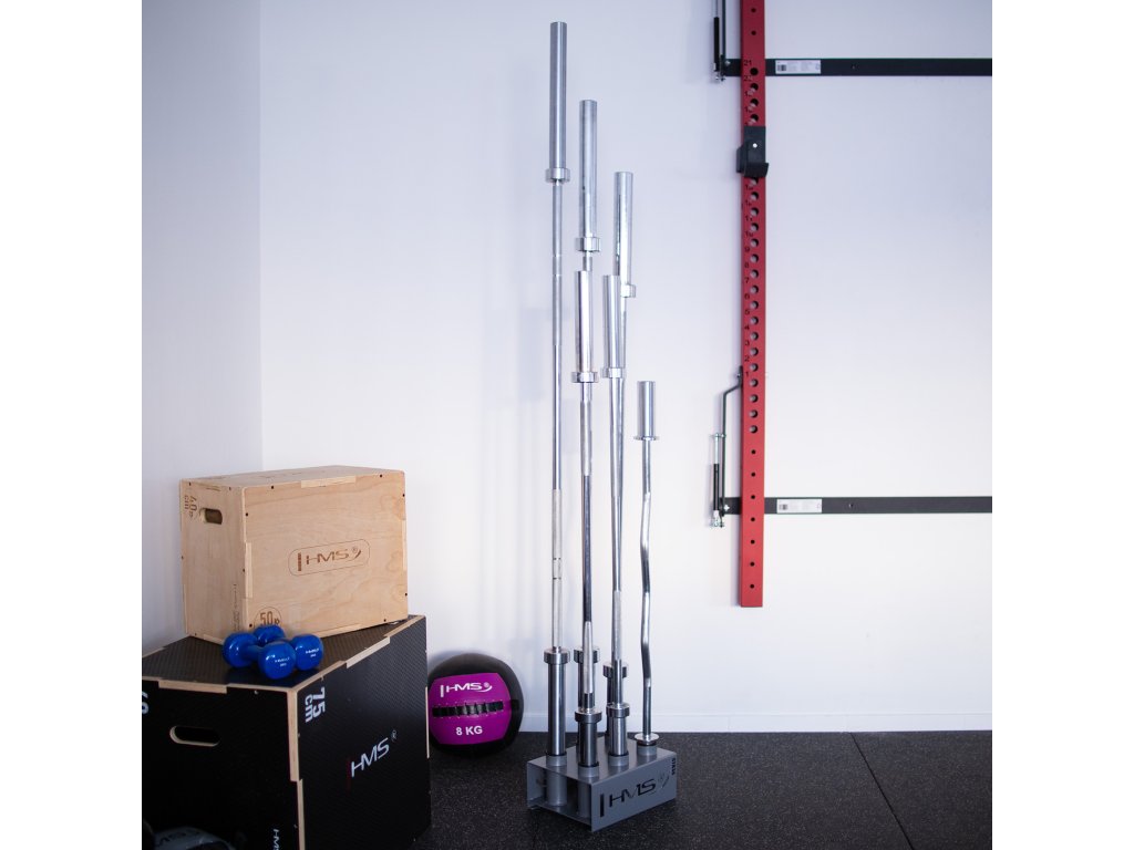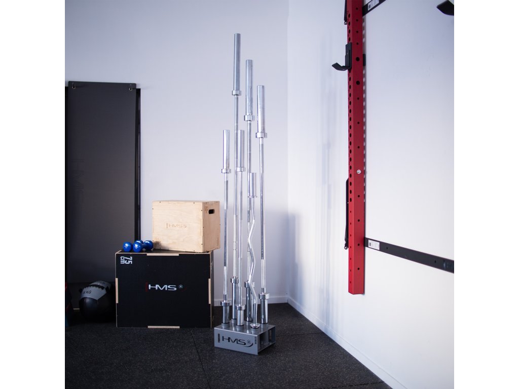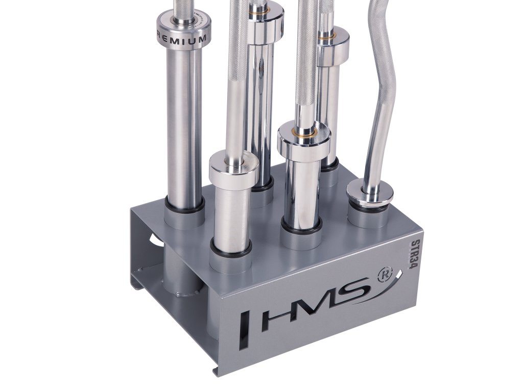 Stojan na olympijské osi STR34 od spoločnosti HMS vám ušetrí veľa miesta vo vašom tréningovom priestore. Umožňuje postaviť šesť osí vedľa seba vo zvislej polohe.