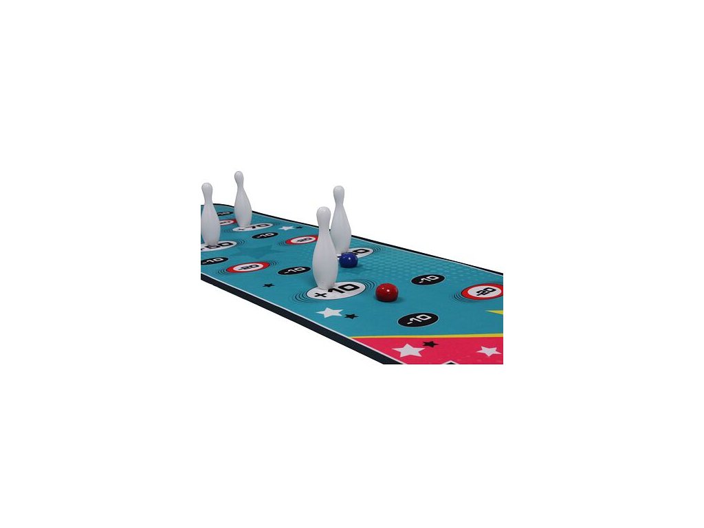 Merco Table Bowling je jednoduchá stolná spoločenská hra, pri ktorej si užijú veľa zábavy ako deti, tak dospelí. Posúvaním hracích kameňov v podobe bowlingových gulí s kovovou guľôčkou na spodnej časti sa na filcovej hracej ploche triafajú kolky a ďalšie ciele na ploche s rôznymi bodovými ohodnoteniami. Tím, ktorý zhodí viac kolkov, alebo zasiahne viac bodovaných oblastí, vyhráva. Hra je uložená v praktickom balení, takže je ľahko prenosná a vy si ju môžete na rovnom povrchu zahrať kdekoľvek a kedykoľvek. Užijete si chvíle zábavy aj napätia so spoločenskou hrou Merco Table Bowling. Obsah balenia: - 1 x hracia plocha z filcového materiálu, rozmer: 120 x 30 cm - 6 x plastový hrací kameň s kovovou guličkou. V dvoch farbách, priemer kameňa 2,5 cm - 6 x plastová kolka, priemer 3 cm, výška 10 cm - Rozmer balenia: 33 x 7 x 7 cm - Váha balenia: 265 g Pravidlá hry: 1. Rozdeľte sa na dva tímy, každý tím má 3 hracie kamene v rovnakej farbe. 2. Rozlosujte, ktorý tím bude začínať. 3. Posunutím hracieho kameňa sa snažte trafiť kolky alebo iné bodované časti hracieho poľa. 4. Po každom pokuse sa tímy striedajú. V ďalšom kole začína ten tím, ktorý v predchádzajúcom kole získal viac bodov. 5. Body sa počítajú iba ak trafíte bodovanú časť. Platný je aj pokus, keď trafíte iba okraj bodovanej časti. 6. Ak trafíte červeno označenú oblasť, body sa odčítajú. 7. Hra končí po použití všetkých kameňov a spočítaním bodov. Môžete si však zvoliť, že budete hrať na viac kôl a body spočítať až po dohraní všetkých kôl. Víťazí tím s viacerými bodmi. Variant - obranná hra: Obranca rozmiestni svoje tri gule v zadnej polovici ihriska, jednu guľu umiestni do oblasti 100 bodov a zvyšné dve gule ako obranca. Útočiaca strana musí použiť svoje tri gule na to, aby odpálila gule brániacej strany mimo bodovaciu oblasť. Po útoku a obrane si obrancovia a útočníci vymenia pole a pokračujú v hre. Za úspešnú obranu alebo útok sa zapisuje 1 bod a vyhráva tím, ktorý ako prvý získa 10 bodov. Hra je určená pre 2-6 hráčov a je vhodná pre deti od 6 rokov.Dodatočné parametre