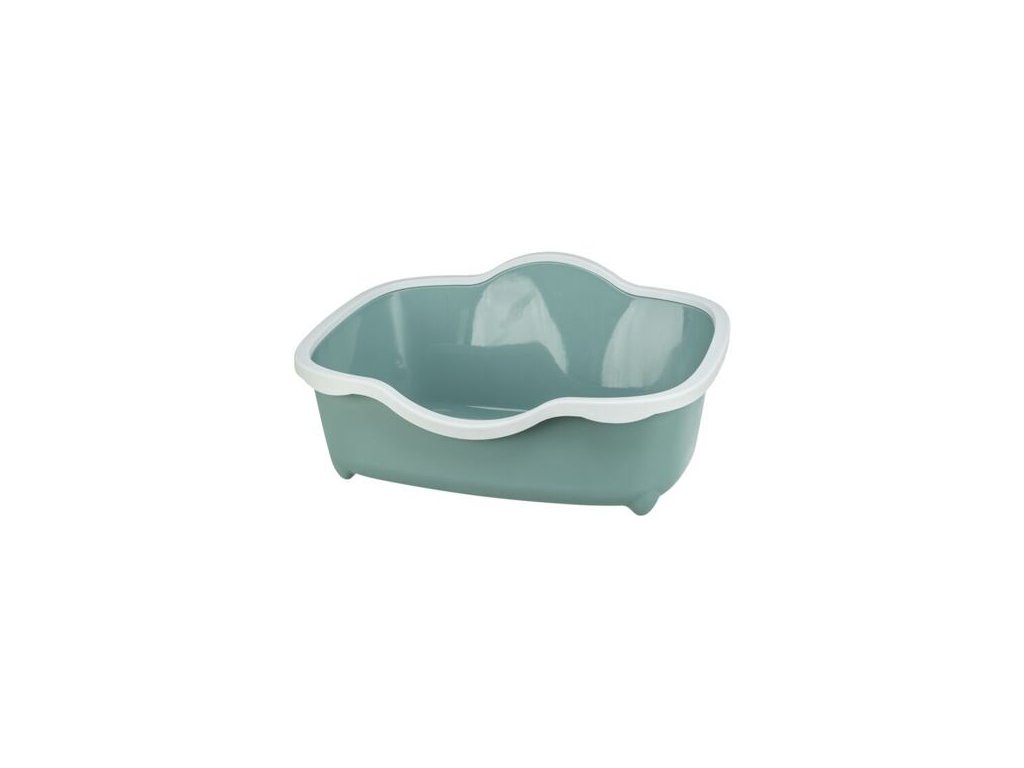 Toaleta pre mačky DAVIO, s okrajom, 56 x 26 x 39 cm, zelená/biela