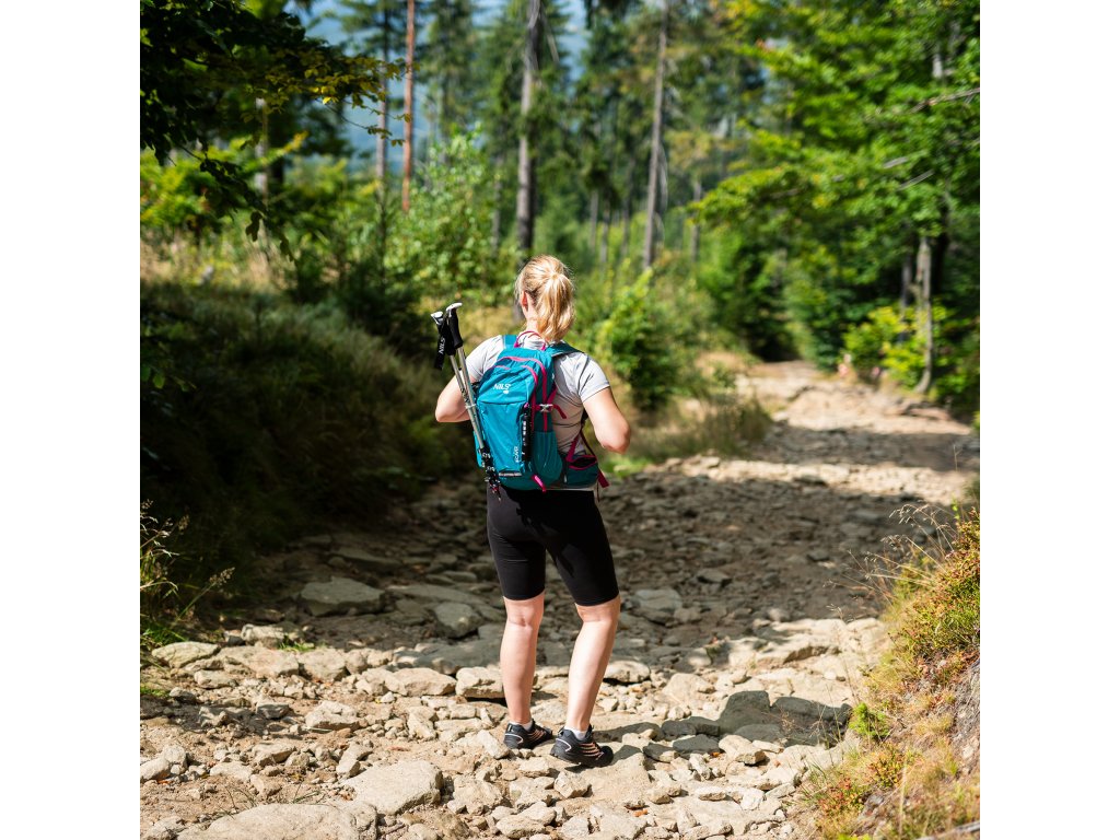 Na pracke hrudného popruhu je umiestnená integrovaná záchranná píšťalka pre väčšiu bezpečnosť v núdzových situáciách. Batoh ďalej ponúka ďalší panel s úchytmi na rôzne príslušenstvo, dve bočné sieťované vrecká a vrecká na zips v bedrovom páse, ideálny na uloženie telefónu alebo iných drobností.