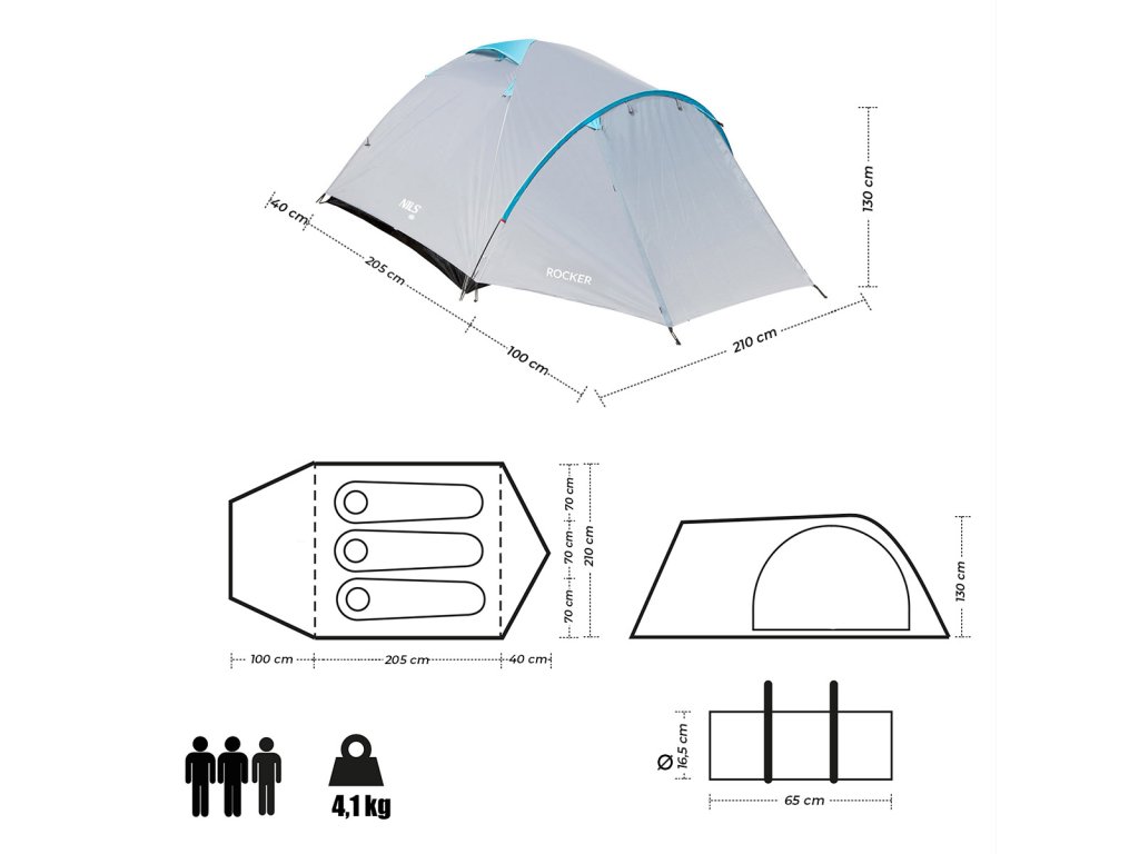 NILS Camp NC6013 Rocker je 3 osobový stan, ktorý oceníte počas teplých letných nocí na záhrade alebo pri pobyte v kempe. Stan Rocker je dvojplášťový a skladá sa z priestrannej predsiene a jednej spálne.