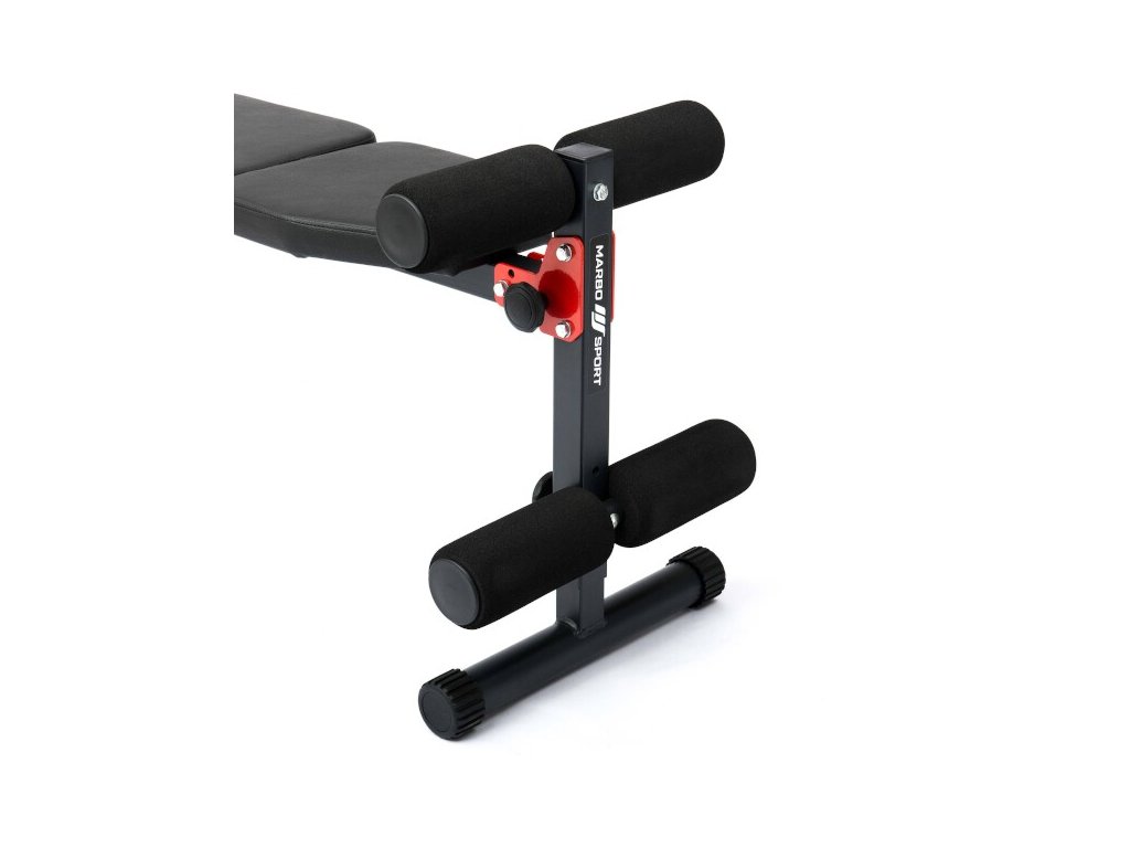 Lavicu ide nastaviť do niekoľkých polôh a záleží iba na Vás, či budete trénovať svaly brucha, chrbta, ramien, atď. Zarážka nôh je nastaviteľná do dvoch polôh a zároveň slúži na nastavenie uhla lavice. Konštrukcia lavice MARBO MH-L104 2.0 je vyrobená z oceľového profilu 40 x 40 mm, vďaka ktorému má nosnosť až 200 kilogramov. Jednotlivé diely sú vyrobené na precíznych, programovateľných CNC strojoch, tento výrobný proces je zárukou bezproblémovej montáže a zároveň garantuje plnú stabilitu kompletnej lavice. Praktickou stránkou lavice MARBO MH-L104 2.0 je možnosť rýchleho zloženia napríklad pod posteľ. Skladanie sa vykonáva pomocou skrutiek s plastovým, ergonomickým úchytom. Na zarážky sa navliekajú 8 centimetrov vysokej valce z EVA peny. Polstrovanie sme opatrili dvojitými švami pre maximálnu pevnosť. V najnamáhanejšom mieste sme opierku pretiahli druhou vrstvou kože s logom MARBO Sport.