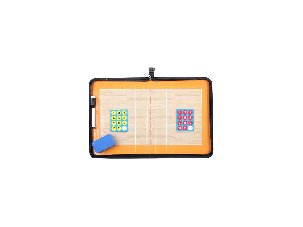 Trénerská tabuľa Volleyball RX92 patrí medzi základné vybavenie trénera súťažného volejbalového klubu na demonštrovanie a plánovanie najrôznejších herných stratégií. Na rozmiestnenie hráčov v poli využijete dve sady odlišne farebných magnetov s číslami a pre ďalšie ťahy a pohyby hráčov čierny popisovač s hubkou. Magnetická trénerská tabuľa po rozložení znázorňuje celé volejbalové ihrisko. Jej zazipovaný peračník s tvrdými doskami je zhotovený zo syntetickej PU kože s oderuvzdornými vlastnosťami a má hmotnosť približne 425 gramov a rozmery po rozložení 42 x 28 cm. S trénerskou tabuľou Volleyball RX92 potrebujete pre svoj tím už iba geniálny taktický plán!Dodatočné parametre