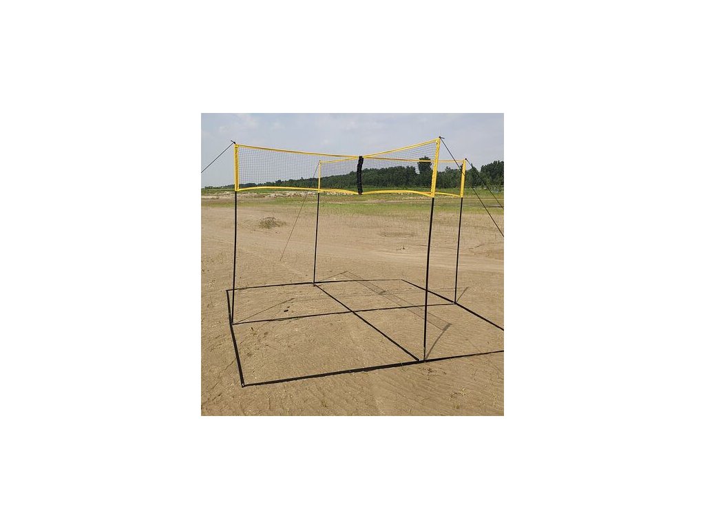 Hra Crossnet prvýkrát dobyla pláže v USA v roku 2018. Vznikla spojením hry foursquare a volejbalu. Je to prvá volejbalová hra, ktorá sa hrá do kríža, je veľmi pestrá a akčná. Hrá každý proti každému a tak musíte byť neustále v strehu. Jednoducho ideálna zábava na letné dni. Jednoduchý set VolleyCross je určený pre začínajúcich a rekreačných hráčov. Výšku siete je možné prispôsobiť podľa potreby hráčov vďaka rozkladacím tyčkám konštrukcie (maximálna výška 2 m, dĺžka jednotlivých dielov tyčiek je 0,5 m). Set je určený na piesok alebo trávnatý povrch. Obsah balenia: 1x sieť – žlto olemovaná, výška 0,5 m, dĺžka 4 x 1,5 m 4 x rozkladacia hliníková tyčka o max.dĺžke 2 m, priemer 16mm 4 x napínacie lano 6 x textilné lajná na ohraničenie hracích polí ihriska 8 x kotviaci kolík 1 x prenosný vak na uloženie celého setu Materiál: hliník (tyčky), oceľ (kolíky), PE – polyetylén (sieť, lajny, upínacie laná) Pravidlá hry Crossnet: - Po postavení ihriska sa očíslujú hracie štvorce 1 až 4. Každý hráč obsadí jeden z nich – na základe žrebu. V každom štvorci môže hrať aj viac hráčov. - Hra začína podaním hráča zo štvorca číslo 4 a to spoza zadnej čiary. Servis mieri krížom do štvorca 2. Musí byť vykonaný jednou rukou a tvrdou časťou dlane. Prijímajúci hráč nesmie udrieť balón nad sieťou. Toto pravidlo platí však iba pri príjme podania. - Pri následnej hre má každý hráč len jeden dotyk. Blok sa ako dotyk nepočíta. - Výmena končí chybou jedného z hráčov. - Po chybe sa hráči v poliach točia. Hráč, ktorý chyboval, sa presúva do štvorca 1 a zostávajúci hráči rotujú v smere hodinových ručičiek smerom ku štvorcu 4. Príklad: hráč v 4 pokazí. Presunie sa teda do 1. Hráč z 1 do 2, hráč z 2 do 3 a hráč z 3 do 4. - Bod sa dá získať len vo štvorci 4. Ak urobí chybu ktokoľvek zo štvorca 1, 2 alebo 3, hráč v 4 získava bod. Pokiaľ výmenu pokazí hráč v 4, nikto bod nezíska a hráči sa premiestnia o jedno miesto v smere hodinových ručičiek. - Hrá sa do jedenástich bodov a výsledný rozdiel musí byť o dva body. - Dotyk siete a prešľap pri podaní sú chyby.Dodatočné parametre