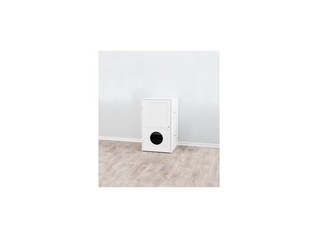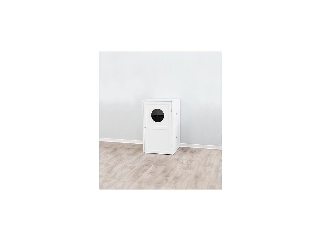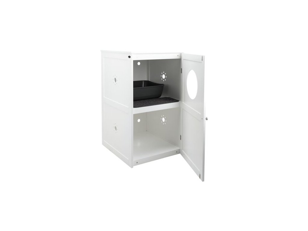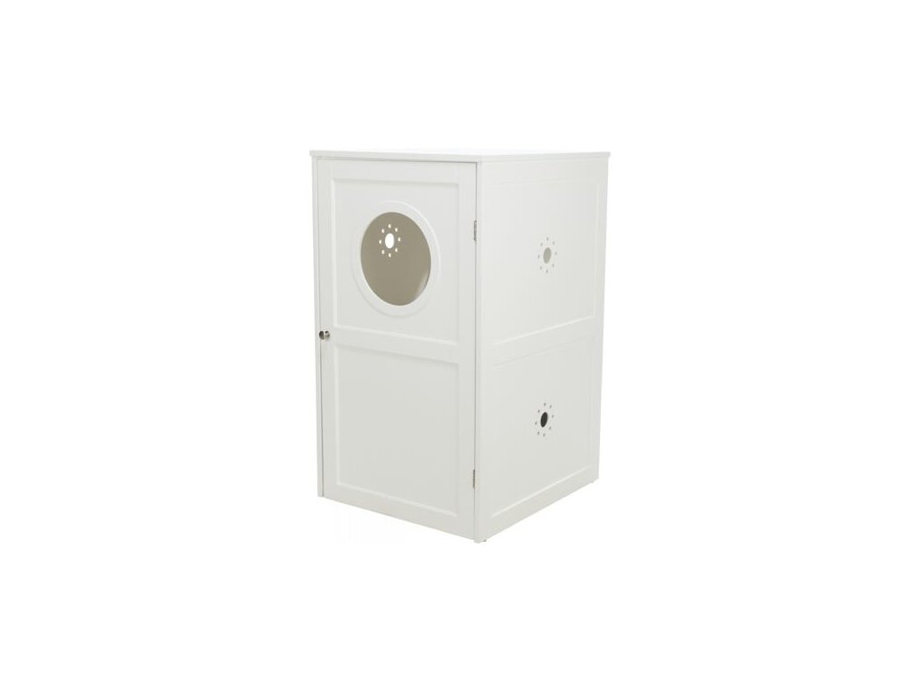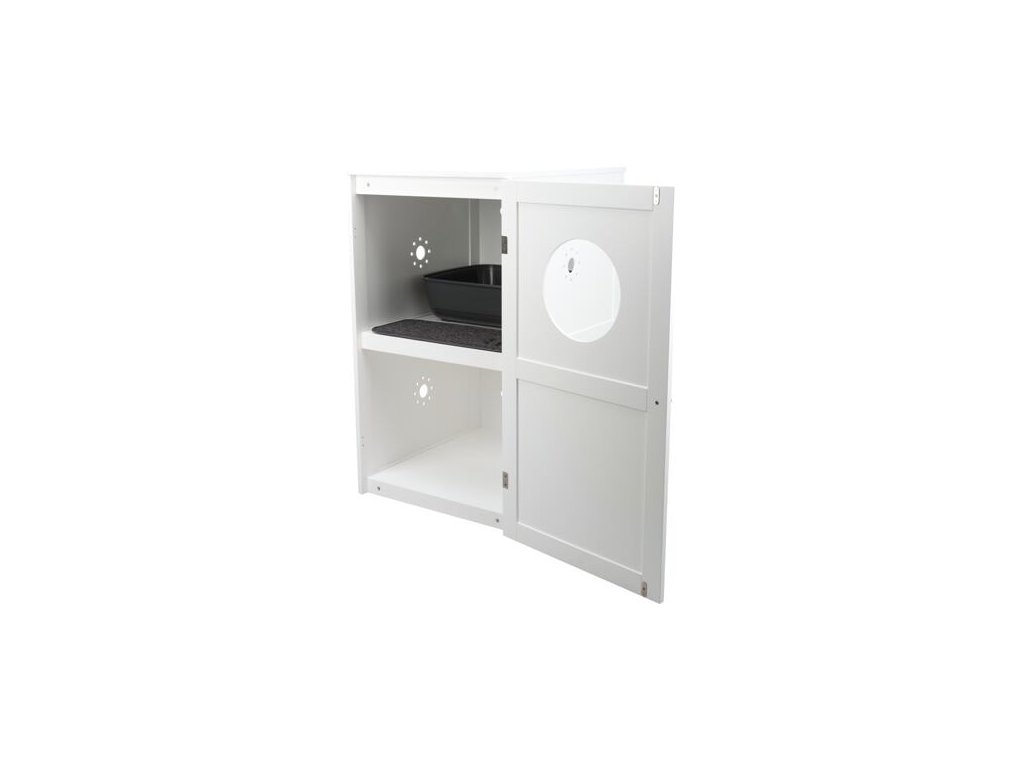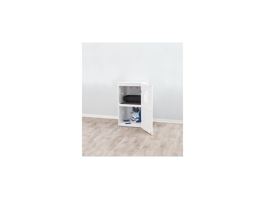 XL domček na mačaciu toaletu, 2 poličky, MDF, 53 x 90 x 58 cm, biela