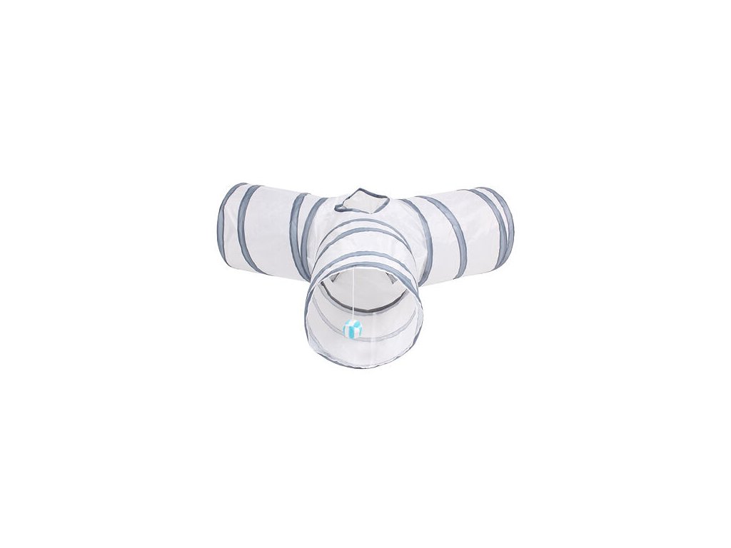 Agility tunel Y Three-way je skvelým nástrojom na rozvoj pohybových aktivít a interaktívnej zábavy vašich štvornohých kamarátov. Tunel v tvare písmena Y má každý z troch východov dlhý 35 cm. Na jednom z koncov je zavesená plyšová loptička s rolničkou, ktorá slúži ako podnet k hre zvlášť pre mačičky. „Rukávy“ s priemerom 25 cm sú spojené a uprostred sa nachádza ďalší otvor s priemerom 15 cm, ktorý môže vaše zvieratko preskúmavať. Pre svoje rozmery je tunel vhodný pre malé plemená psov, šteňatá, mačky a domáce králiky. Tunel je vyrobený z priedušného polyesteru so zapošitým špirálovitým drôtom v stene. K dostaniu je v dvoch farebných prevedeniach: bielo-šedá a čierno-ružová. Y Three-way je možné vziať so sebou takmer kamkoľvek vďaka jeho skladnosti a hmotnosti 275 g. Tunel rozložíte aj zložíte behom niekoľkých sekúnd a zaistíte gumičkou. S troj-vchodovým agility tunelom Y Three-way si s vašim maznáčikom užijete veľa zábavy.Dodatočné parametre